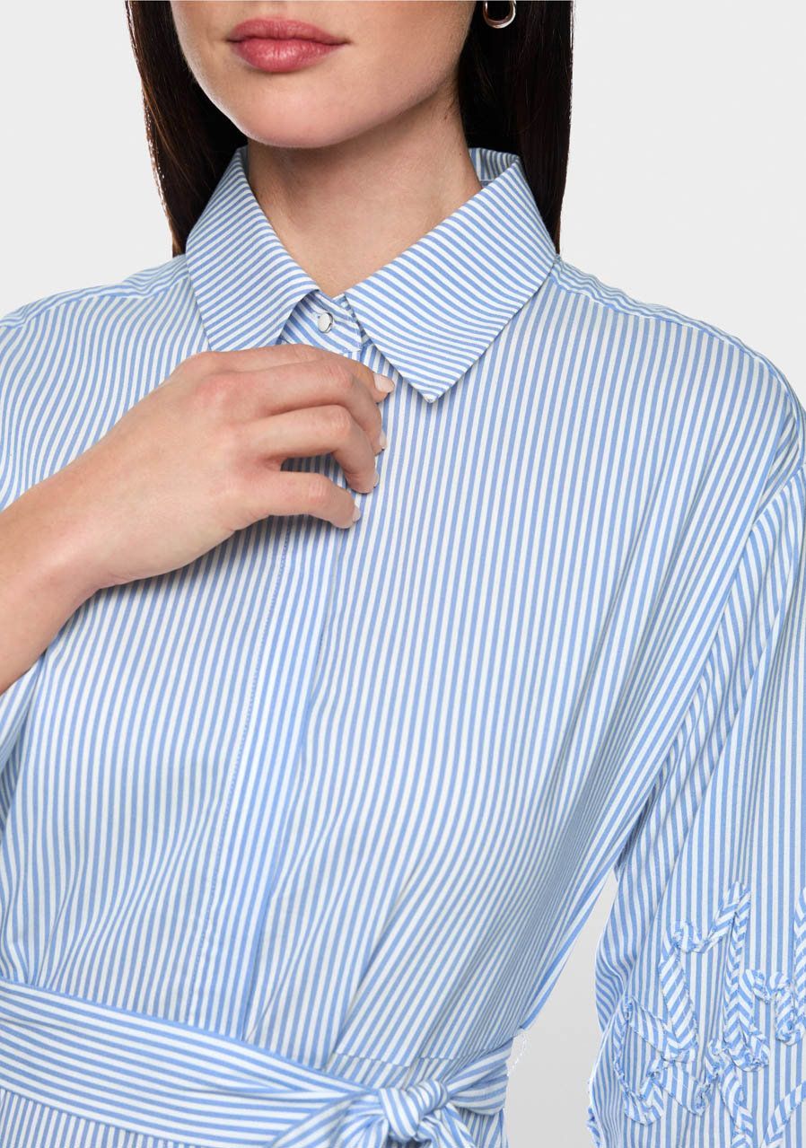 Elegancka damska sukienka koszulowa w kolorze Magical Blue przyciągnie wzrok od pierwszego wejrzenia soczystym kolorem i precyzyjnym wykonaniem. Minimalistyczny krój podkreśla kobiecą sylwetkę, a wysokiej jakości materiał i czyste linie podkreślają jej atuty. Sukienka idealnie sprawdzi się na co dzień i na spotkania towarzyskie. Można ją z łatwością zestawić z czółenkami, aby uzyskać formalny look, lub z sandałami, aby uzyskać luźniejszy look. Wygodny krój zapewnia wygodę przez cały dzień, a jednocześnie prezentuje się elegancko i ponadczasowo.
