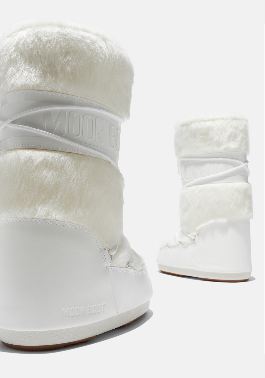 Te wyjątkowe damskie buty Moon Boot oczarują Cię futurystycznym designem i najnowocześniejszą technologią, która gwarantuje komfort i ochronę nawet w najbardziej wymagających warunkach. Dzięki lekkiej podeszwie środkowej, wielowarstwowej piankowej wyściółce i gumowej podeszwie z przyssawkami, zapewniają doskonałą izolację i kontrolę w każdym terenie. Są w 100% wodoodporne, łatwe w zakładaniu i wyposażone w sznurek do regulacji. Eleganckie detale z PVC i metalowe szlufki w kolorze srebrnym sprawiają, że buty te to doskonały wybór na każdą zimę, łącząc styl i wygodę z luksusowym wykończeniem ze sztucznego futra. Zainspirowane lądowaniem na Księżycu w 1969 roku, te kultowe buty zapewnią Ci ciepło i ochronę podczas każdej zimowej przygody, zarówno w mieście, jak i w górach.
