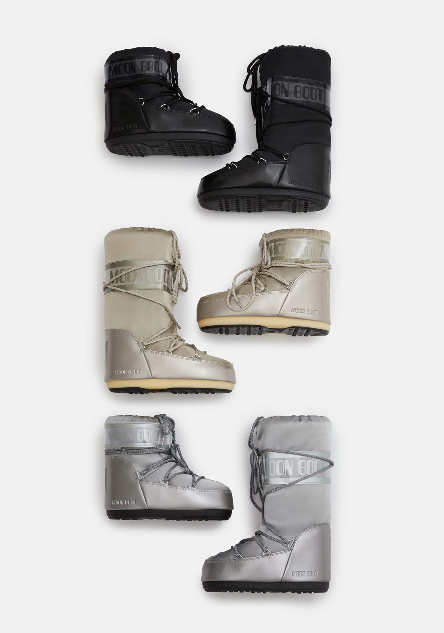 Moon Boot Icon Glance to wariacja legendarnego modelu z nowoczesnym, błyszczącym wykończeniem, które nadaje butom luksusowy wygląd. Dzięki hydrofobowemu wykończeniu i wytrzymałej cholewce buty te sprawdzą się w zimowych warunkach, zarówno w mieście, jak i w górach. Miękka poliestrowa podszewka zapewnia przyjemny komfort i ciepło, a solidna podeszwa z gumy TR gwarantuje stabilny krok nawet na śniegu. Dzięki szerokiej gamie rozmiarów, model ten jest odpowiedni dla kobiet, mężczyzn i dzieci.