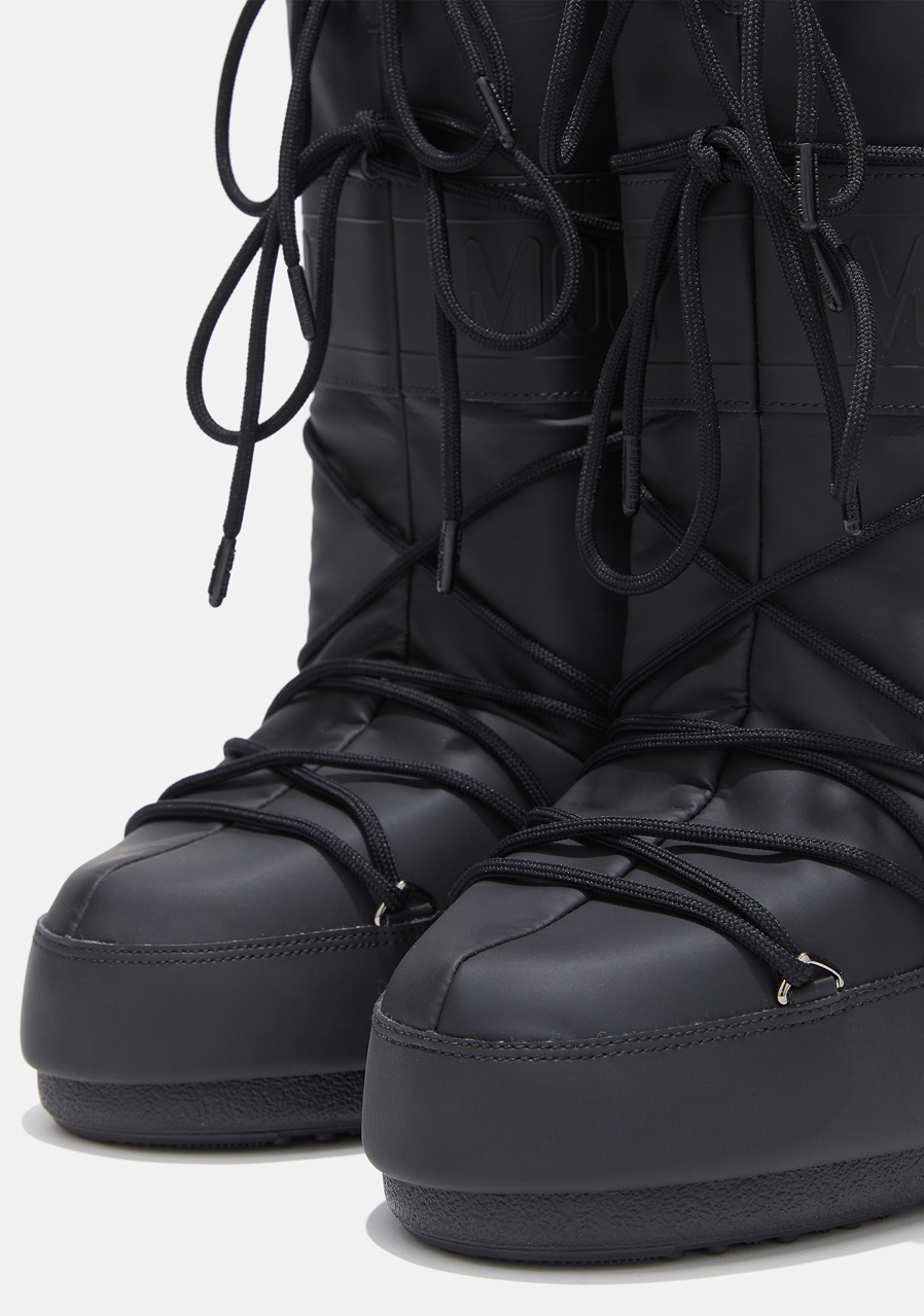 Damskie śniegowce Moon Boot Icon Rubber w kolorze czarnym 001 Black to luksusowa wersja kultowego modelu z nowoczesną, gumowaną cholewką. Błyszcząca powierzchnia nadaje butom elegancki wygląd, a jednocześnie zwiększa ich odporność na zimowe warunki. Ciepła podszewka zapewnia komfort nawet w chłodne dni, wodoodporna cholewka chroni przed wilgocią i śniegiem, a solidna gumowa podeszwa zapewnia stabilność na ośnieżonych i śliskich nawierzchniach. Ten model to idealny wybór dla kobiet, które cenią sobie połączenie ponadczasowego designu z wyrazistym stylem.