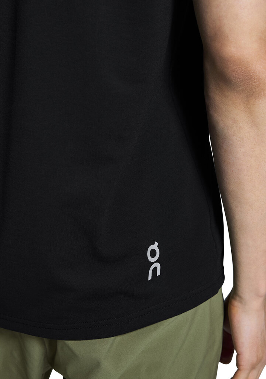 Koszulka ma minimalistyczny krój z płaskimi szwami i strategicznie rozmieszczonymi panelami wentylacyjnymi. Szybkoschnąca tkanina skutecznie odprowadza pot, a gładka powierzchnia minimalizuje ryzyko otarć. Czysty, czarny wygląd z subtelnym logo On nadaje nowoczesny i sportowy charakter.