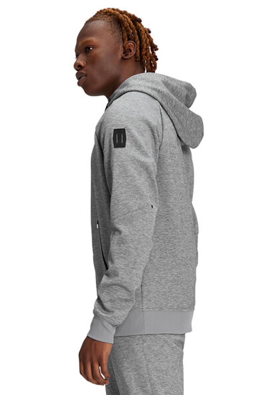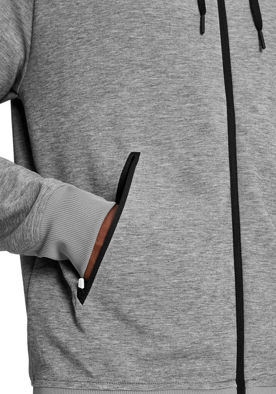 Materiał: 82% poliester z recyklingu, 13% lyocell (TENCEL), 5% elastan Fason: Luźny (relaxed fit) Kolor: Szary (Grey) Zapięcie: Pełny zamek błyskawiczny Kieszenie: Dwie boczne kieszenie na zamek – bezpieczne przechowywanie drobiazgów Kaptur: Regulowany sznurkiem Detale: Elastyczne mankiety i dół bluzy dla lepszego dopasowania