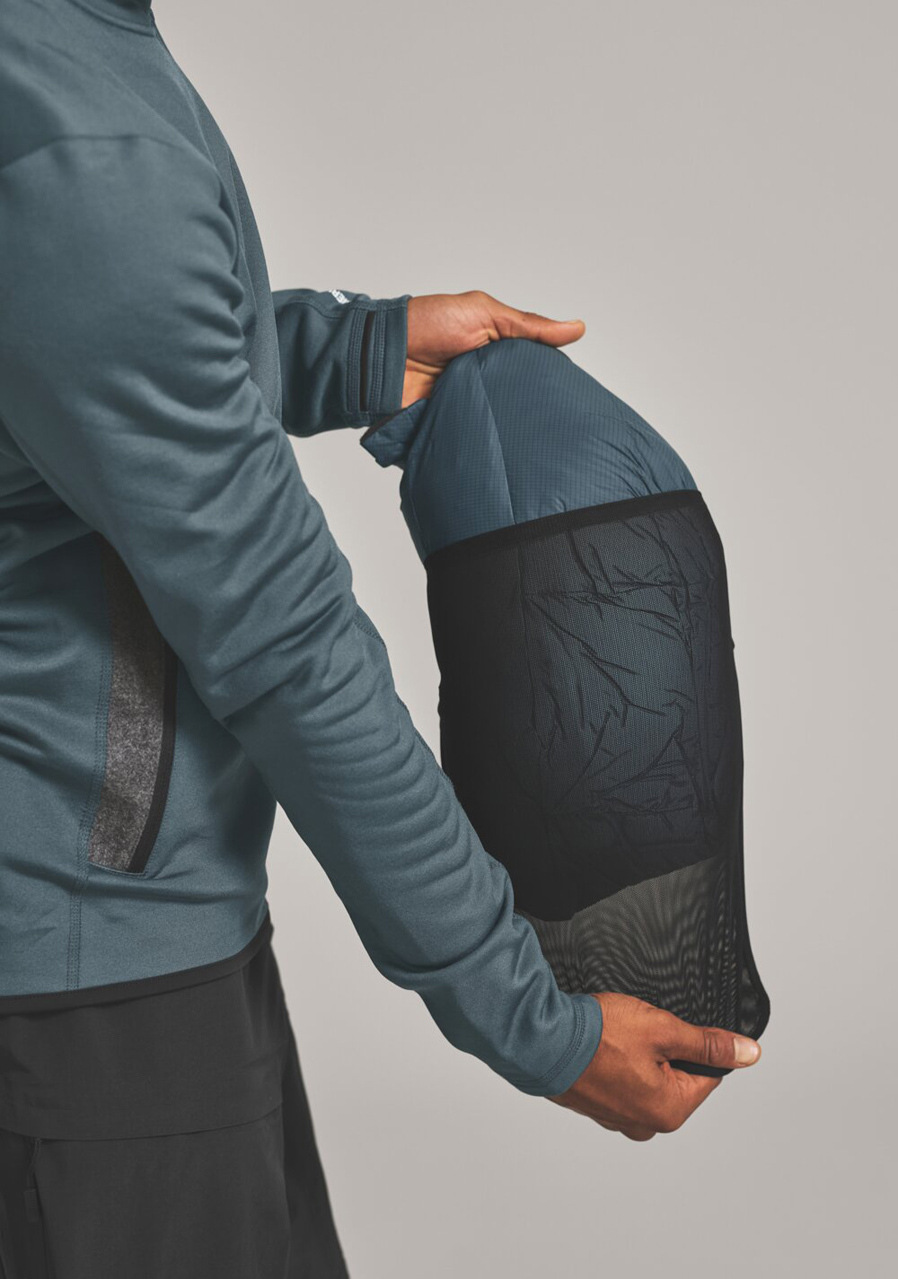 Panele boczne i pod pachami : 50% wełny pochodzącej z recyklingu, 30% poliestru pochodzącego z recyklingu, 20% poliestru