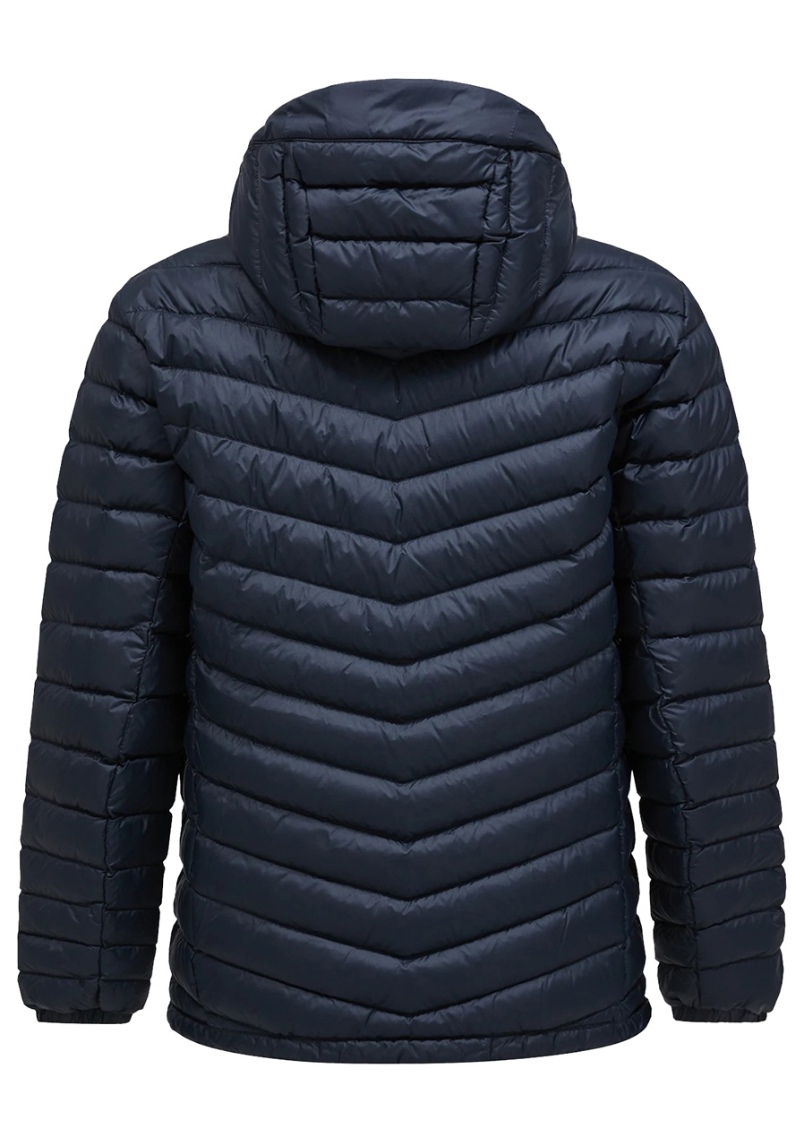Wypełnienie stanowi wysokiej jakości kaczy puch (90% puchu, 10% piór) o sprężystości 700 cuin, zapewniający doskonałą izolację bez zbędnego ciężaru. Kurtka posiada solidny, ocieplany kaptur, dwie boczne kieszenie na zamek, kieszeń wewnętrzną oraz elastyczne ściągacze, które chronią przed zimnem.