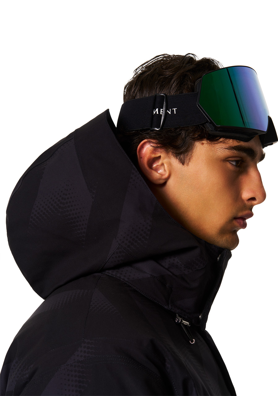 Dodatkowe cechy : regulowany pas śnieżny, zamek błyskawiczny na całej długości z wiatroszczelnym zapięciem na zatrzaski, w pełni podszyta konstrukcja