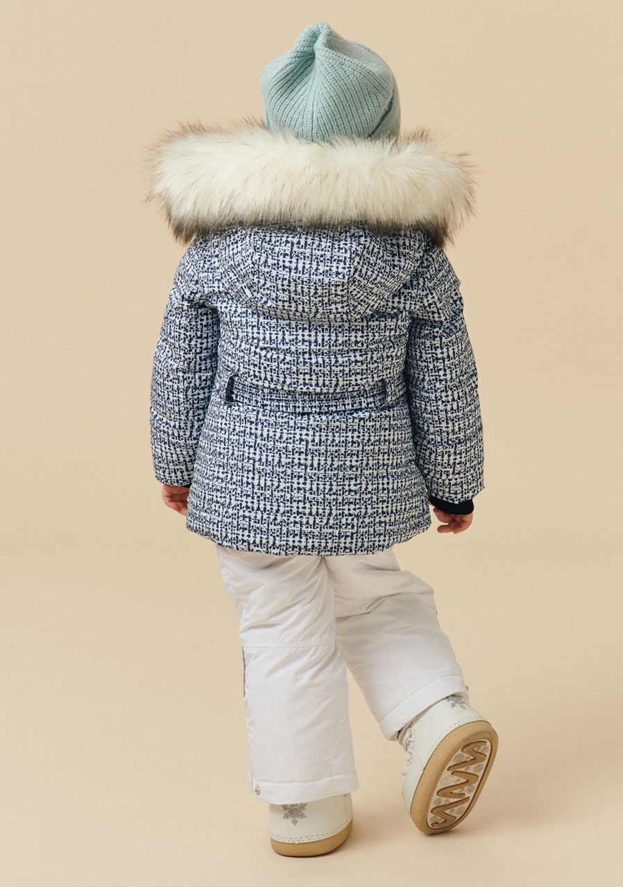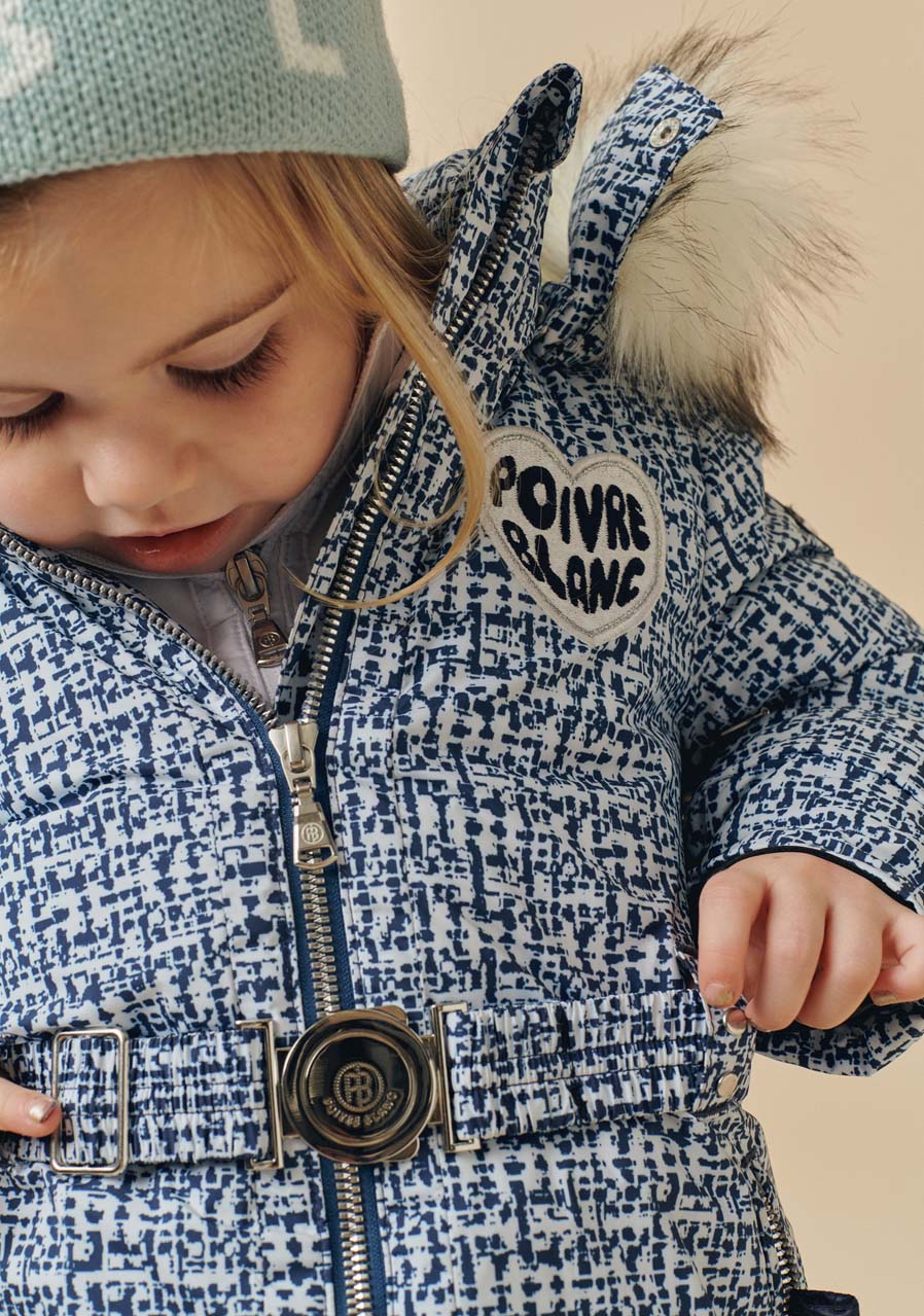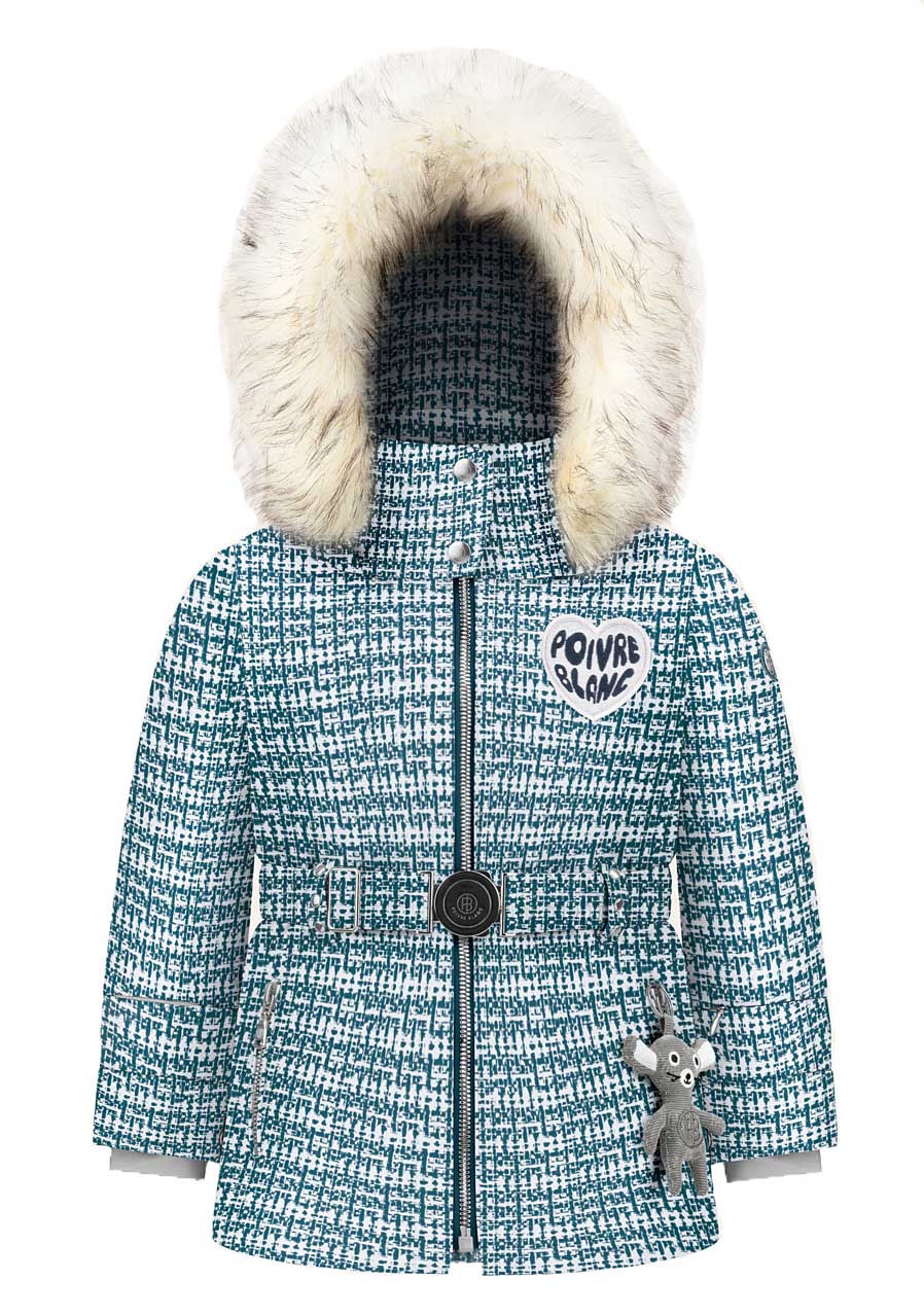 Dětská bunda Poivre Blanc pro nejmenší je stylová a funkční zimní bunda, která poskytuje maximální komfort a ochranu v chladných podmínkách. Vyrobena z kvalitního 100% polyesteru s DWR laminací pro voděodolnost (WP 10K mm) a prodyšnost (MVP 10K g/m2/24h). Bunda je zateplená syntetickým peřím jak na těle, tak v rukávech, což zajišťuje teplo a pohodlí i při nízkých teplotách.