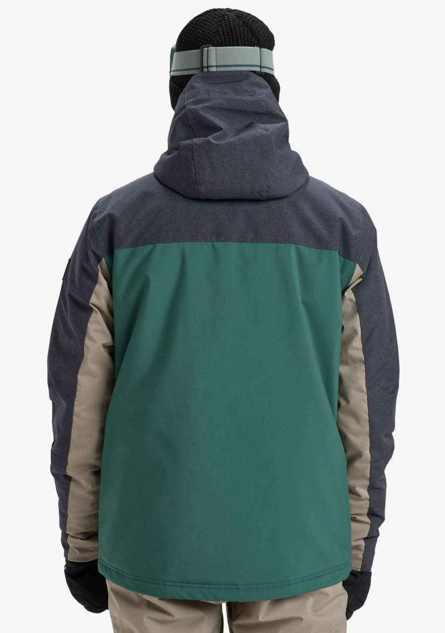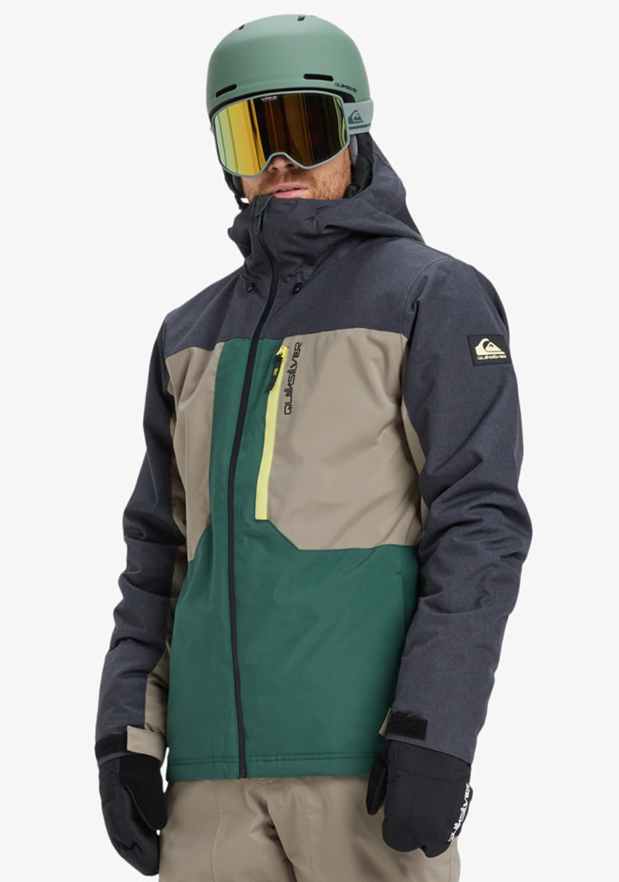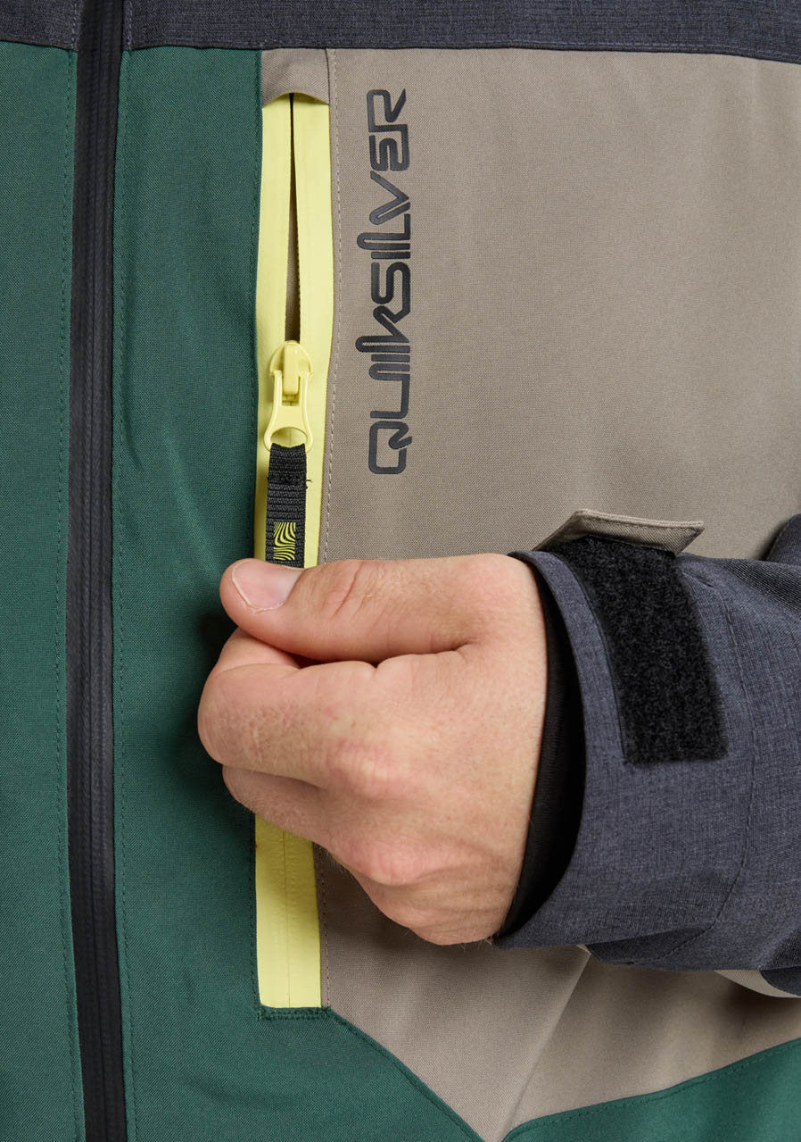 Kurtka Quiksilver Dawson 10K Trekking Green to męska, techniczna kurtka zimowa Quiksilver EQYTJ03510-TKR Dawson – TKR/Trekking Green, idealna do uprawiania sportów zimowych, takich jak snowboard i narciarstwo, a także do rekreacji w chłodne i deszczowe dni. Dzięki połączeniu zaawansowanych technologii i wysokiej jakości materiałów zapewnia niezawodną ochronę przed śniegiem, wiatrem i deszczem, a jednocześnie zapewnia wygodę dzięki klasycznemu krojowi i przemyślanym detalom.