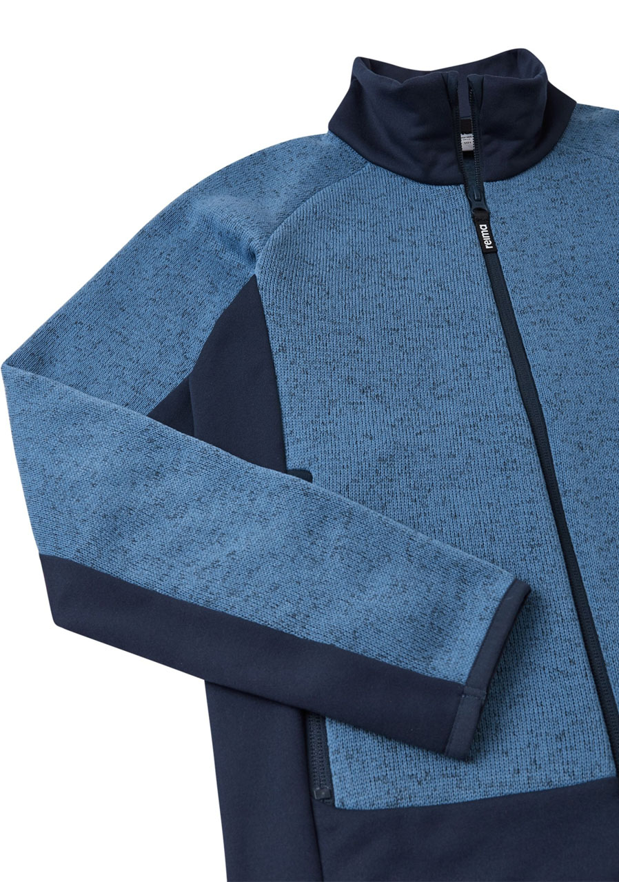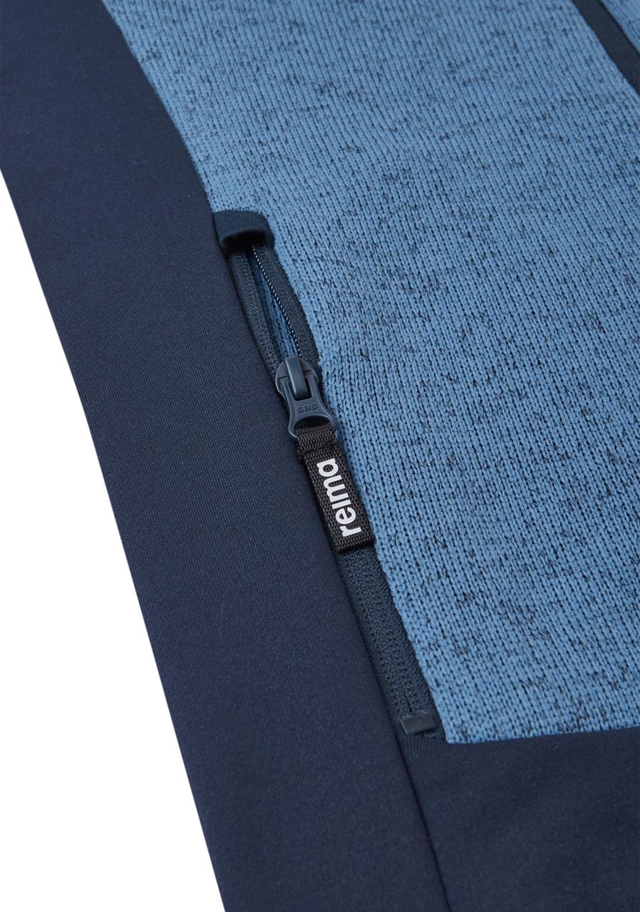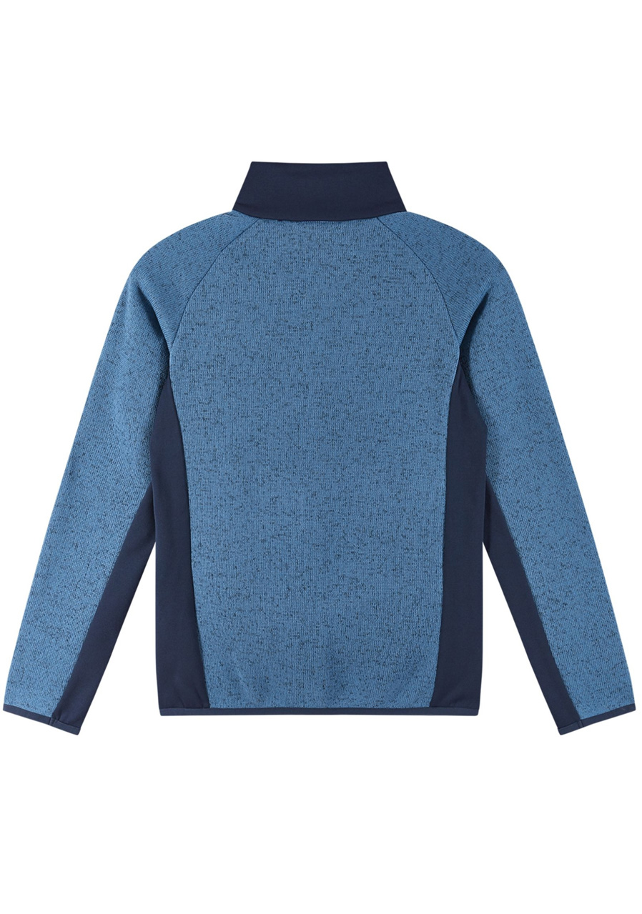 Dziecięcy sweter polarowy Reima Meresta w kolorze Blue Ocean idealnie sprawdzi się jako ciepła warstwa środkowa pod kurtką lub jako samodzielna bluza na chłodniejsze dni. Miękki polar o gładkiej powierzchni zewnętrznej i przyjemnie szczotkowanej strukturze wewnętrznej zapewnia doskonałą izolację termiczną i wysoki komfort noszenia. Materiał jest lekki, oddychający i szybkoschnący, dzięki czemu idealnie nadaje się do noszenia na co dzień, na wycieczki szkolne i zimowe aktywności. Praktyczny zamek błyskawiczny na całej długości z osłoną podbródka i kieszenie boczne zwiększają funkcjonalność i wygodę bluzy.