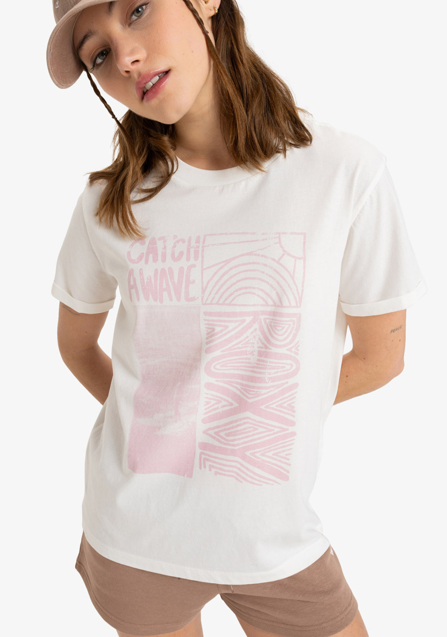 Elegancki damski T-shirt Roxy Ocean z łatwością dopasuje się do letnich stylizacji. Niezależnie od tego, czy wybierasz się do miasta, czy na spacer na łonie natury, koszulka zawsze będzie wyglądać świeżo dzięki wysokiej jakości materiałowi. Materiał dobrze pochłania wilgoć i posiada filtr UV, chroniący przed szkodliwym promieniowaniem słonecznym. Okrągły dekolt i krótkie rękawy to ponadczasowa klasyka. Różowy nadruk z przodu nawiązuje do letniego wzoru.