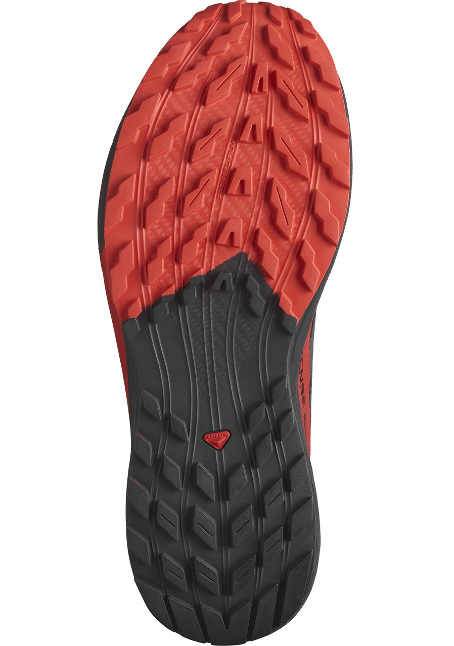 Trailové běžecké boty Salomon Sense Ride 5. Tyto všestranné trailové boty jsou ve svém živlu při krátkých, rychlých trailových bězích nebo ultra vzdálenostech. Super pohodlný nadstandard, který se přizpůsobí různým terénům, s vyváženou mezipodešví pro tlumení, odezvu a navrženým svrškem ze síťoviny s technologií Sensifit™ pro správné pohodlné držení. Lehká, citlivá pěna vytvořená kombinací EVA a olefinu [OBC], která poskytuje dlouhotrvající odpružení a odrazovou energii. Contagrip® MD je určen pro dlouhodobé nošení. Využívá nejodolnější směsi a jeho záběrový vzor funguje stejně dobře na tvrdém a hladkém povrchu jako na povrchu měkkém a nekompaktním.