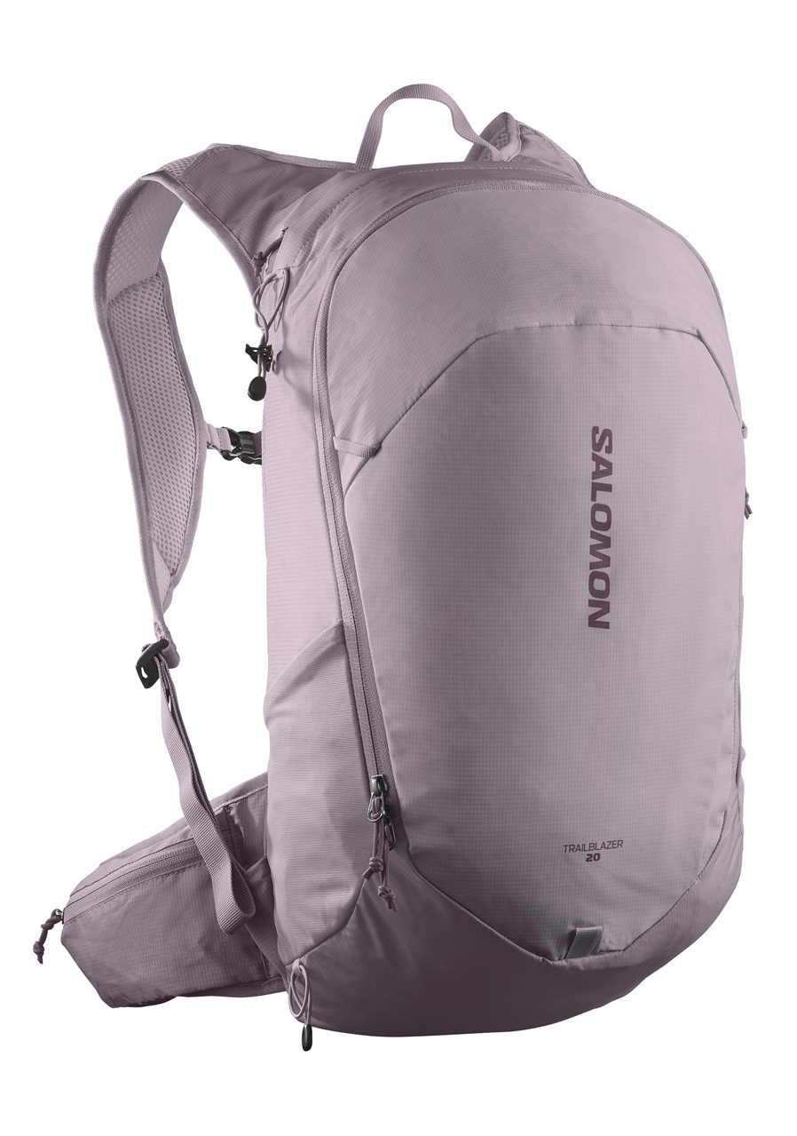 Plecak Salomon Trailblazer 20 Nirvana/Plum Perfect to lekki i wszechstronny plecak odpowiedni na jednodniowe wędrówki, bieganie lub codzienne użytkowanie. Dzięki prostej konstrukcji i wygodnemu dopasowaniu oferuje wystarczająco dużo miejsca na cały niezbędny sprzęt i komfort podczas noszenia