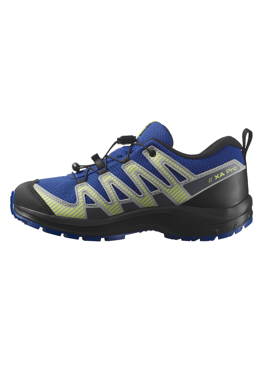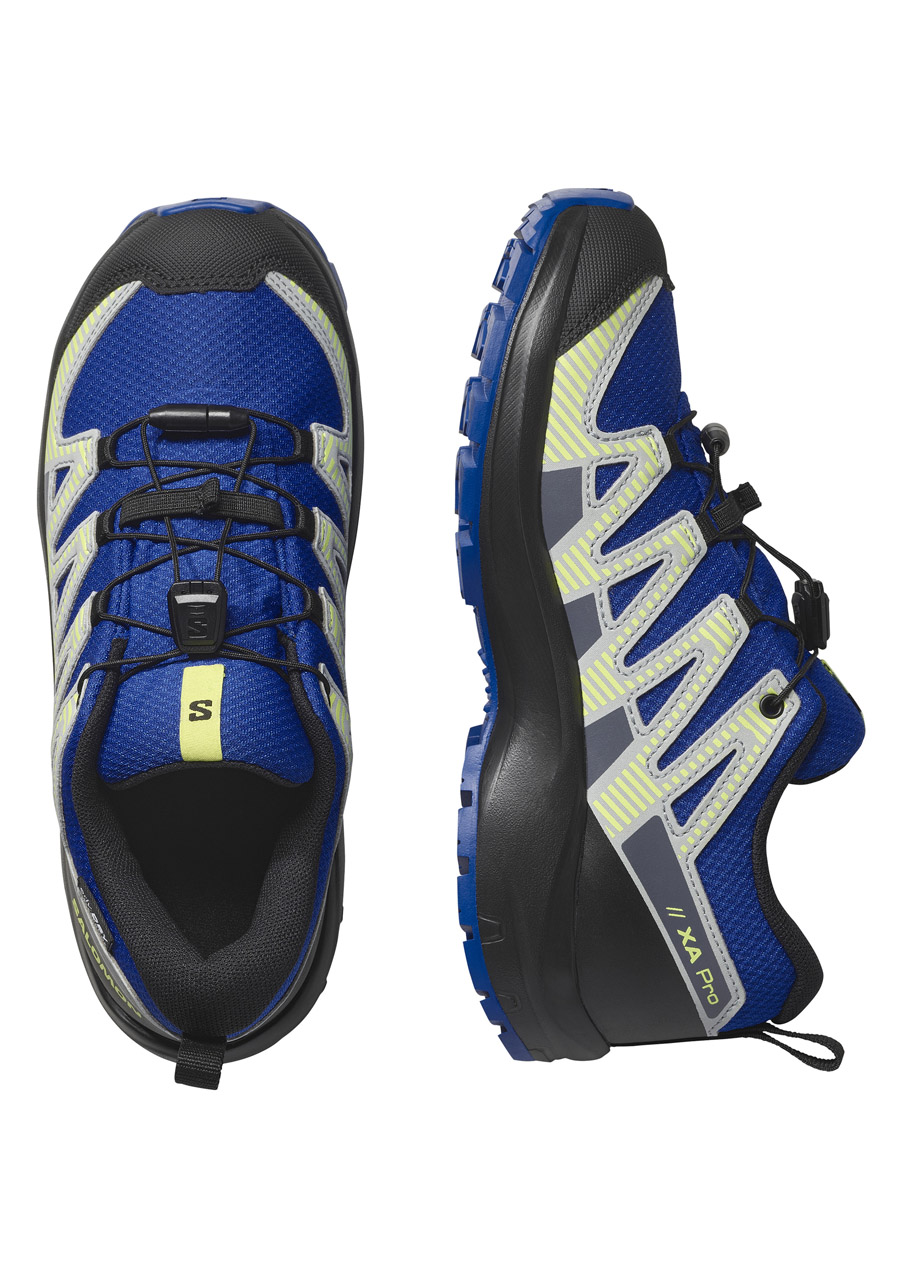 Opis:Dziecięce buty Salomon XA PRO V8 WP J – Nautical Blue / Black / Shocking Green
