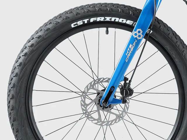 Lekki dziecięcy rower górski z ramą i widelcem z włókna węglowego - idealny dla młodych rowerzystów poszukujących połączenia wydajności i komfortu - koła 24" z szerokimi oponami CST 2.8" zapewniają doskonałą stabilność i komfort w różnorodnym terenie - hydrauliczne hamulce tarczowe TEKTRO TS325A z tarczami o średnicy 110 mm zapewniają bezpieczne i łatwe zatrzymanie - 8-biegowa przerzutka SHIMANO TOURNEY 8S REVO SHIFTER umożliwia płynne zmiany biegów - ergonomiczne siodełko YBT-K185F kid i aluminiowa sztyca zapewniają wygodną jazdę - odpowiedni dla dzieci o wzroście 125–145 cm i wadze do 60 kg Rama: karbonowa HTS Widelec: karbonowy HTS Rozmiar kół: 24" Opony: CST 24×2.8" Hamulce: hydrauliczne tarczowe TEKTRO TS325A, tarcze 110 mm Manetki: SHIMANO TOURNEY 8S REVO SHIFTER Przerzutka tylna: SHIMANO Altus M310 Korby: PROWHEEL 32T, 152 mm Kaseta: SUNSHINE 8S MTB 11–34T Kierownica: aluminiowa 22.2 mm Mostek: aluminiowy 25.4×60 mm Sztyca: aluminiowa 27.2×300 mm Siodełko: YBT-K185F kid Waga: ok. 10.2 kg Maksymalne obciążenie: do 60 kg Rozmiar ramy: M (wysokość ramy 410 mm) Zalecany wzrost rowerzysty: 125–145 cm
