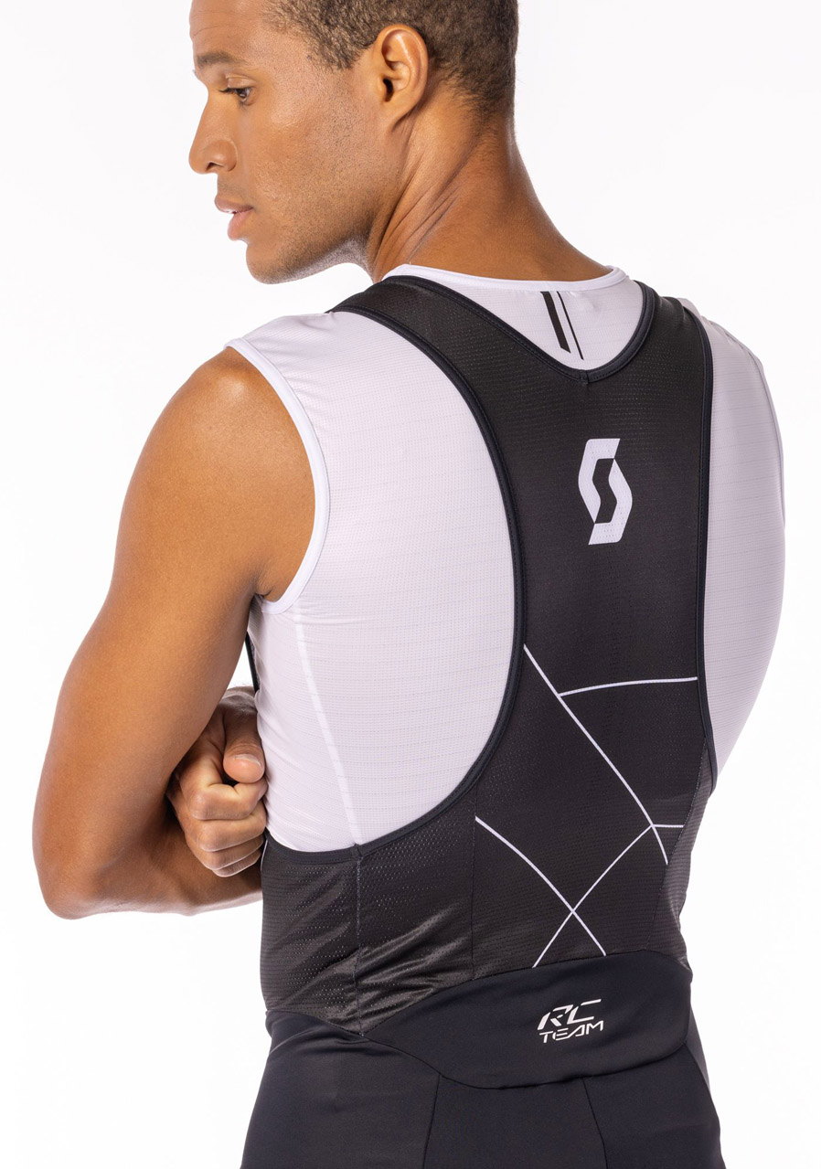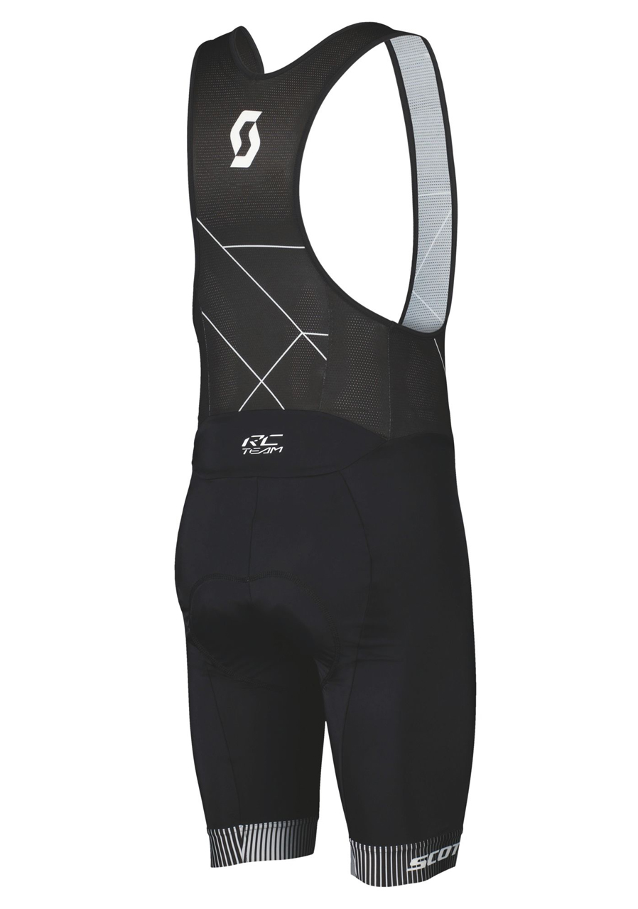 Męskie spodenki SCOTT RC Team z wkładką rowerową SCOTT ++ Performance i oddychającymi siateczkowymi szelkami zapewniają niezbędny komfort podczas wyścigów. Dzięki silikonowi na dolnym obszyciu spodenki pewnie trzymają się na miejscu.
