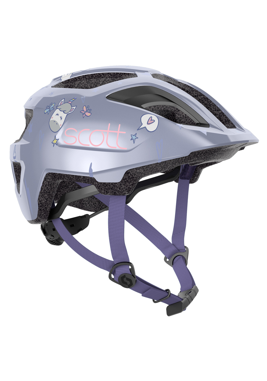 Bezpieczny i wytrzymały dziecięcy kask z technologią In-Mold i rozszerzoną strefą ochronną - niski profil tyłu idealny do fotelików rowerowych - solidna skorupa z poliwęglanu zapewniająca lepszą ochronę przed uderzeniami - wesoły i wyrazisty kolor Happy Purple dla lepszej widoczności i atrakcyjnego wyglądu - łatwy w regulacji system J-RAS zapewniający komfort i bezpieczeństwo