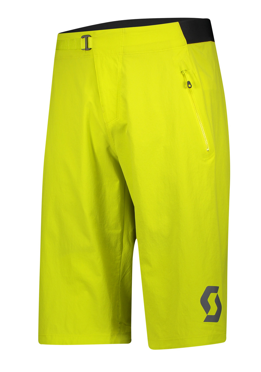 Męskie spodenki rowerowe SCOTT Trail Vertic w kolorze siarkowo-żółtym zostały stworzone z myślą o intensywnych trasach MTB. Wykonane z elastycznego materiału DUROxpand z trwałą, hydrofobową impregnacją DRYOzone bez PFC, gwarantują swobodę ruchów i suchość przez cały dzień. Wewnętrzne, odpinane spodenki z wkładką SCOTT +++ Trail Pro zapewniają komfort na dłuższych dystansach. Dodatkowe atuty to regulowany pas, laserowe otwory wentylacyjne, dwie boczne kieszenie na zamek oraz mała kieszonka na drobiazgi.