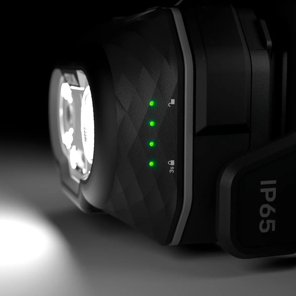 Tryby pracy: Maks .: 500 lm / ok. 2 godz. Średnia : 100 lm / ok. 5 godz. Min .: 15 lm / ok. 25 godz. Zasilanie hybrydowe : akumulator hybrydowy USB-C lub 3×ogniwa AAA Wodoodporność : standard IP65 – odporność na zachlapanie i kurz Waga : około 93 g (wliczając baterie AAA) Inne funkcje : czerwone światło do utrzymania widzenia w nocy, pomarańczowe światło do czytania map, zintegrowany wskaźnik stanu baterii i funkcja „blokady” zapobiegająca przypadkowemu włączeniu
