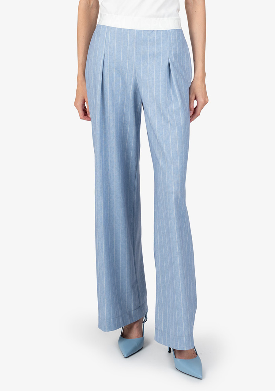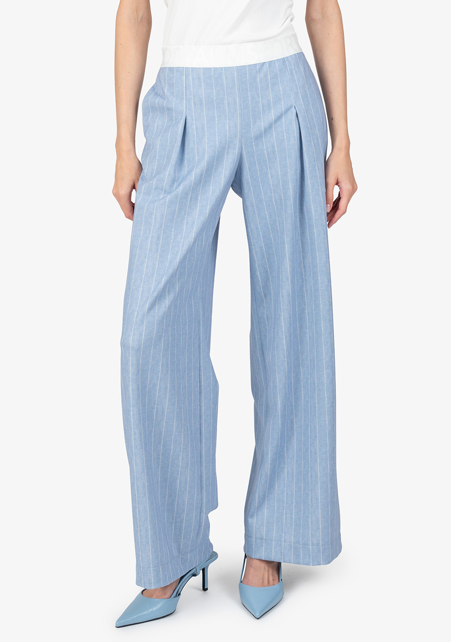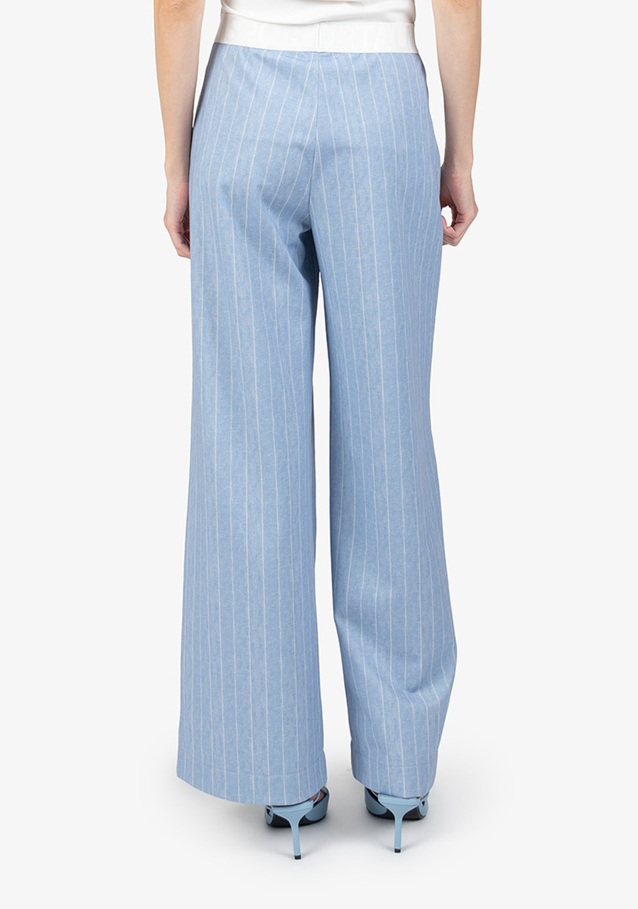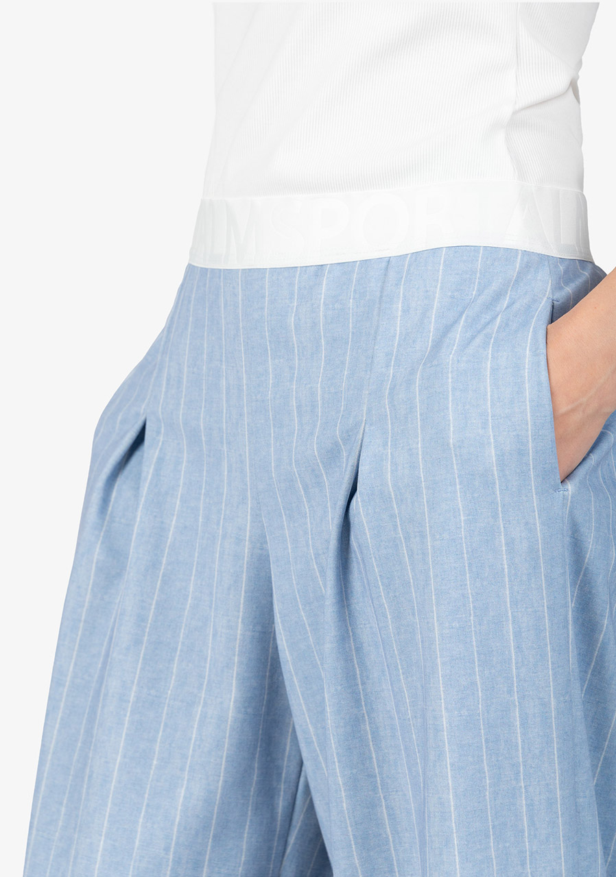 Dámské kalhoty Sportalm 650202 v odstínu Blue Marguerite jsou ideální volbou pro teplé letní dny a uvolněné volnočasové aktivity. Tyto sportovní natahovací kalhoty vynikají svou letní kvalitou proužků a kombinují stylový design s maximálním komfortem při nošení.