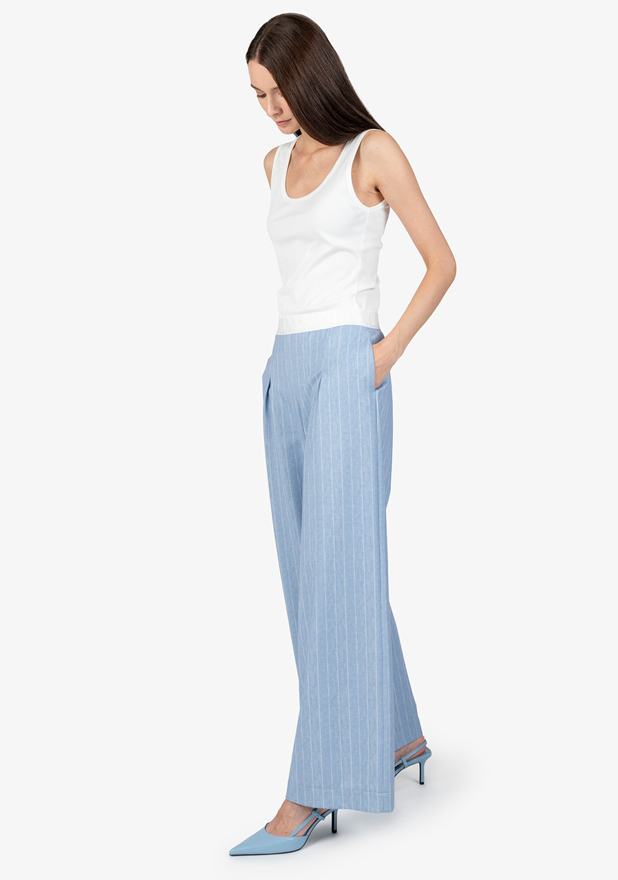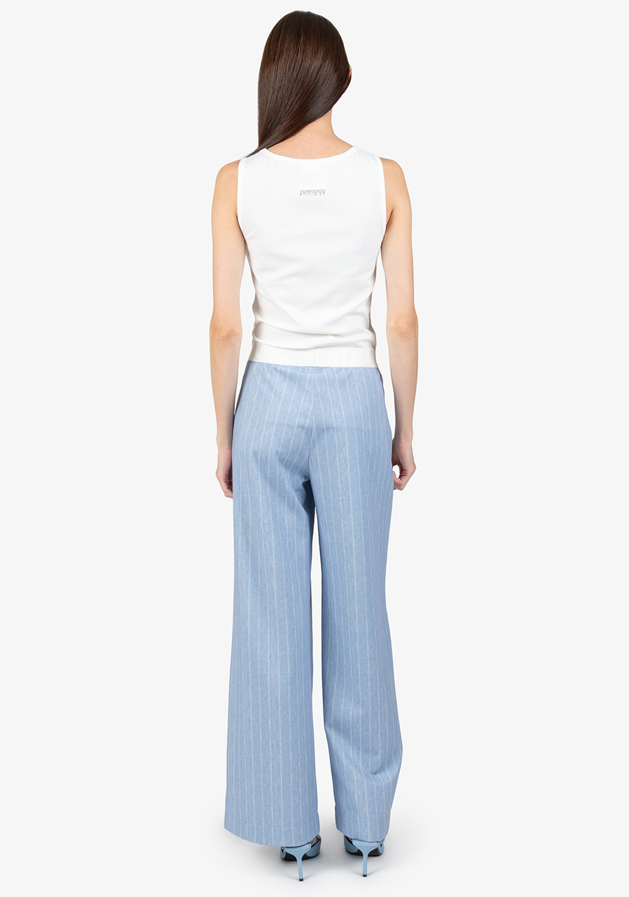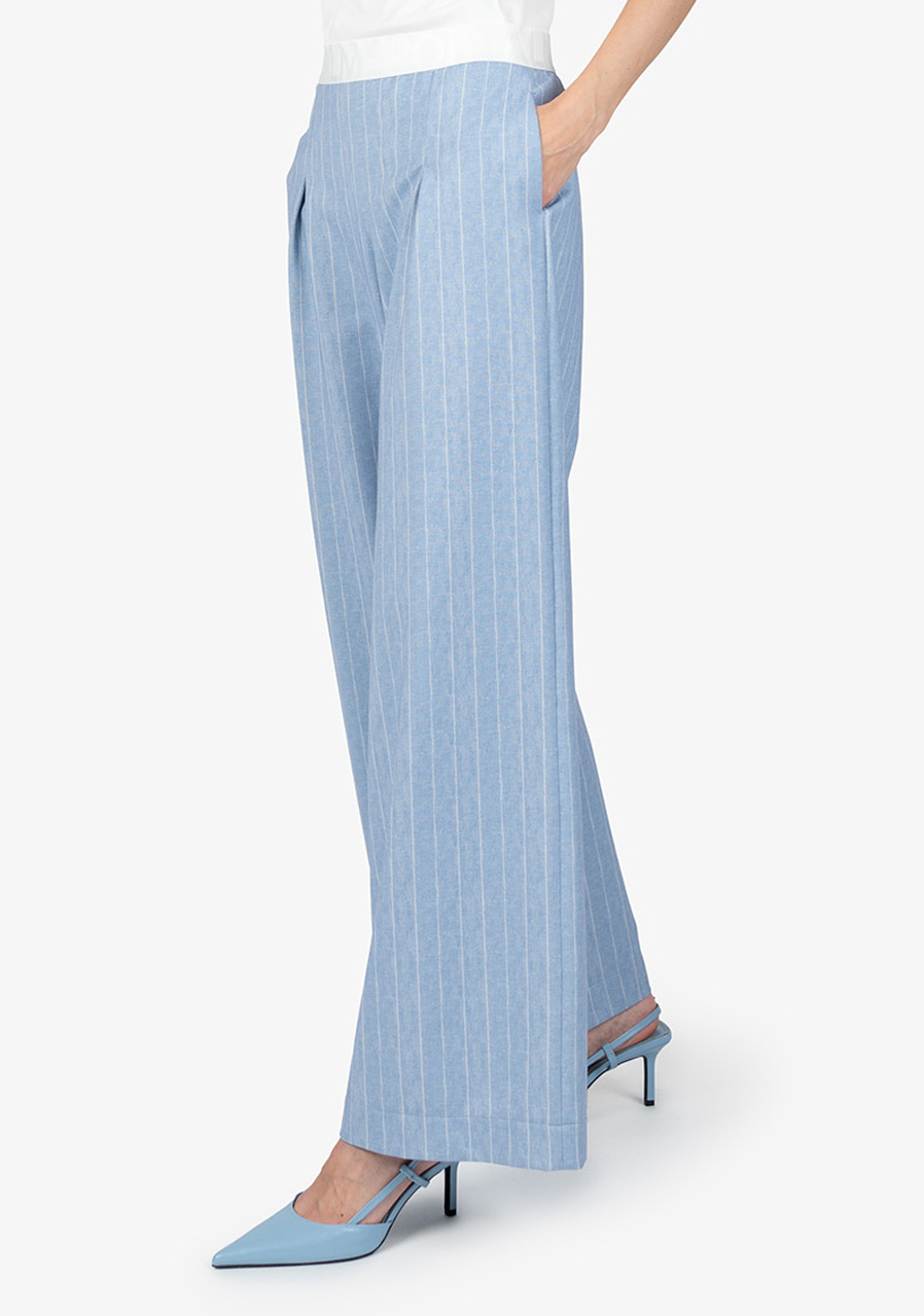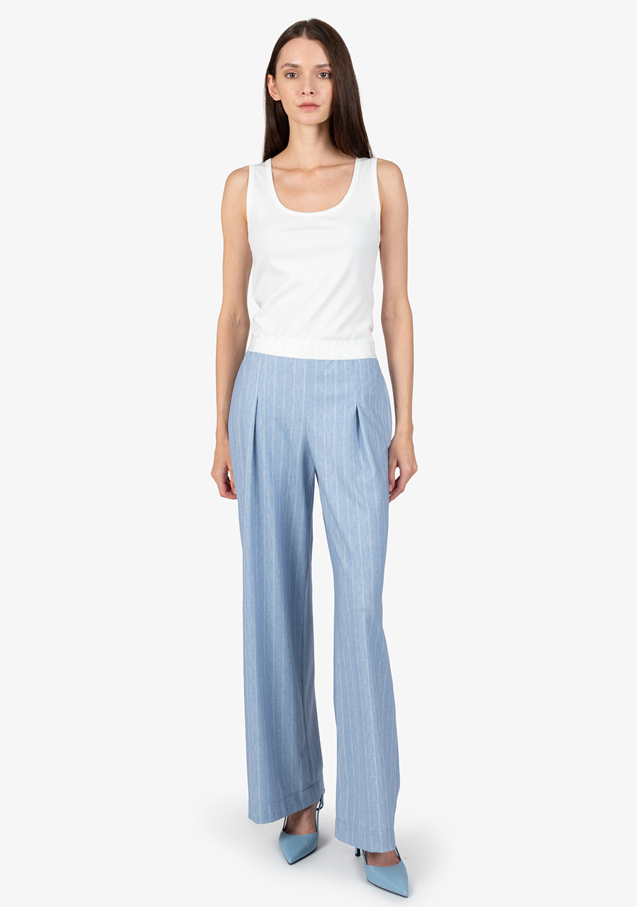 Dámské kalhoty Sportalm 650202 v odstínu Blue Marguerite jsou ideální volbou pro teplé letní dny a uvolněné volnočasové aktivity. Tyto sportovní natahovací kalhoty vynikají svou letní kvalitou proužků a kombinují stylový design s maximálním komfortem při nošení.