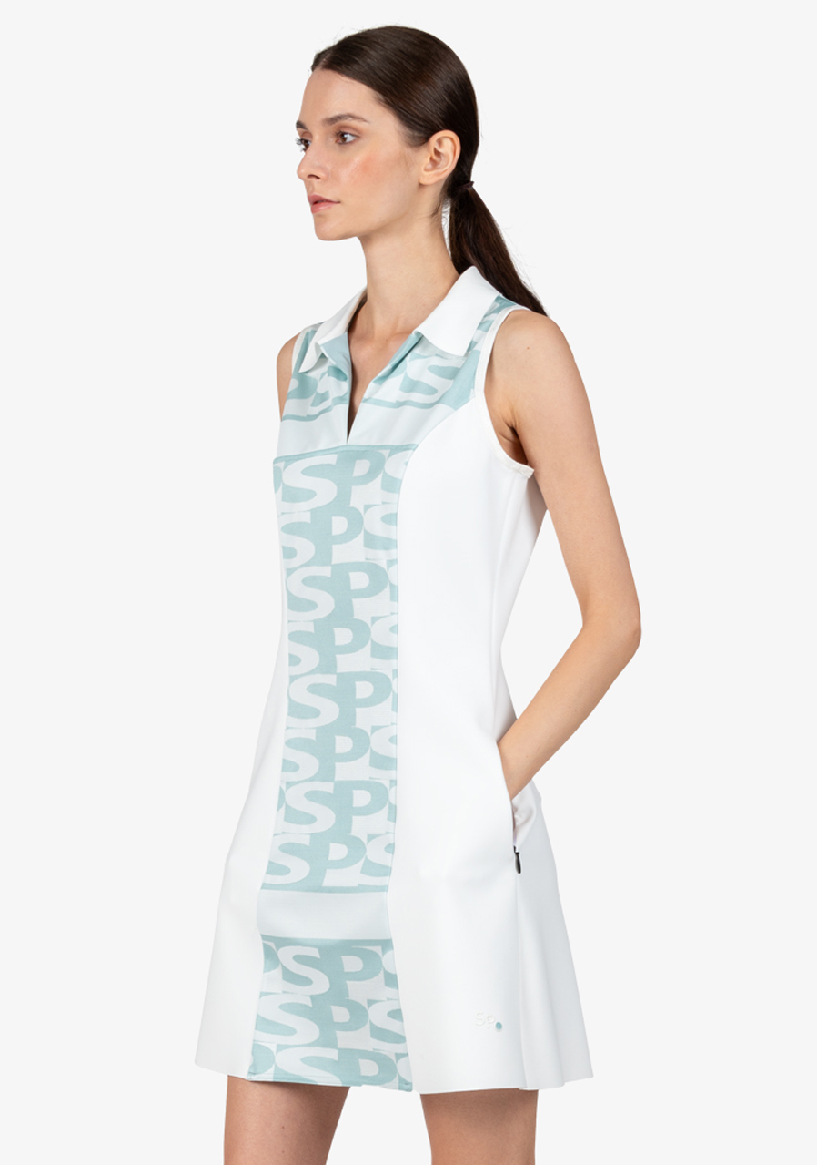 Exkluzivní golfové šaty s košilovým límečkem s výrazným potiskem písmen lichotí postavě díky bočním panelům. Kombinují módní design se sportovní funkčností a dodávají vašemu golfovému vzhledu stylový nádech.