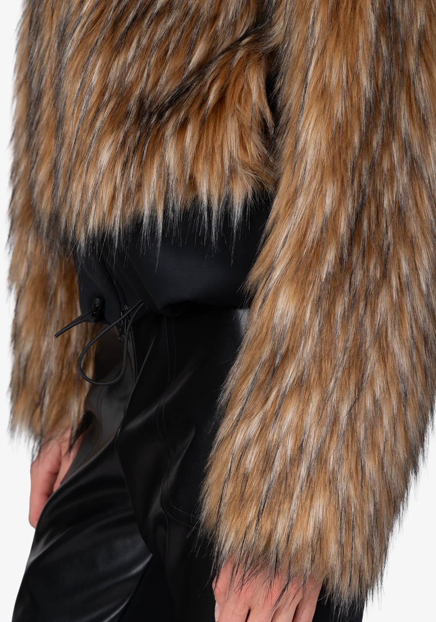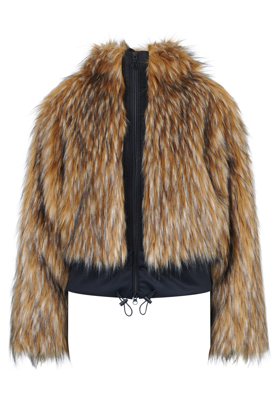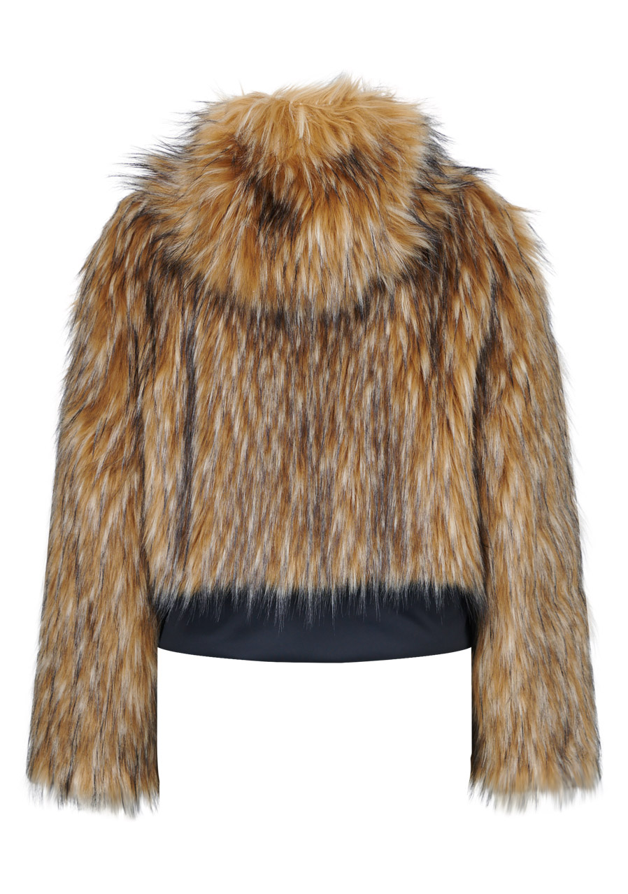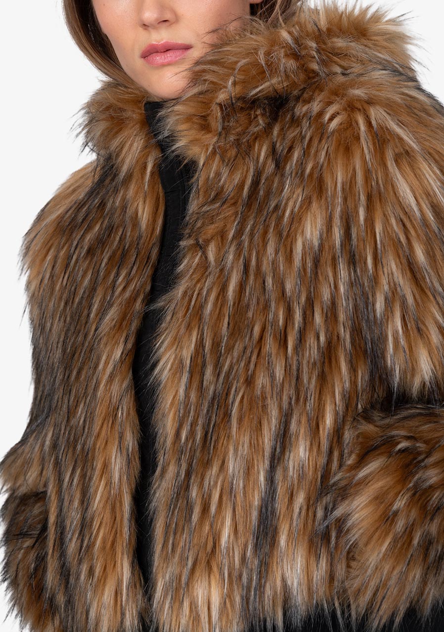 Parametry: Materiał : sztuczne futro o wyglądzie jenota połączone z tkaniną scuba Skład : 85% poliester, 10% poliamid, 5% elastan (typowe dla tego typu połączenia) Podszewka : 100% poliester Krój : regular fit Kaptur : stały Rękawy : długie, z metalowym nitem Sportalm na lewym ramieniu Zapięcie : zamek błyskawiczny dwukierunkowy Kieszenie : kieszenie wpuszczane boczne Szczegóły : szeroki dół typu scuba ze ściągaczem, połączenie materiałów strukturalnych Długość tyłu (rozmiar 36) : 58 cm Styl : elegancki, luksusowy, nowoczesny Sezon : Jesień/Zima 2025
