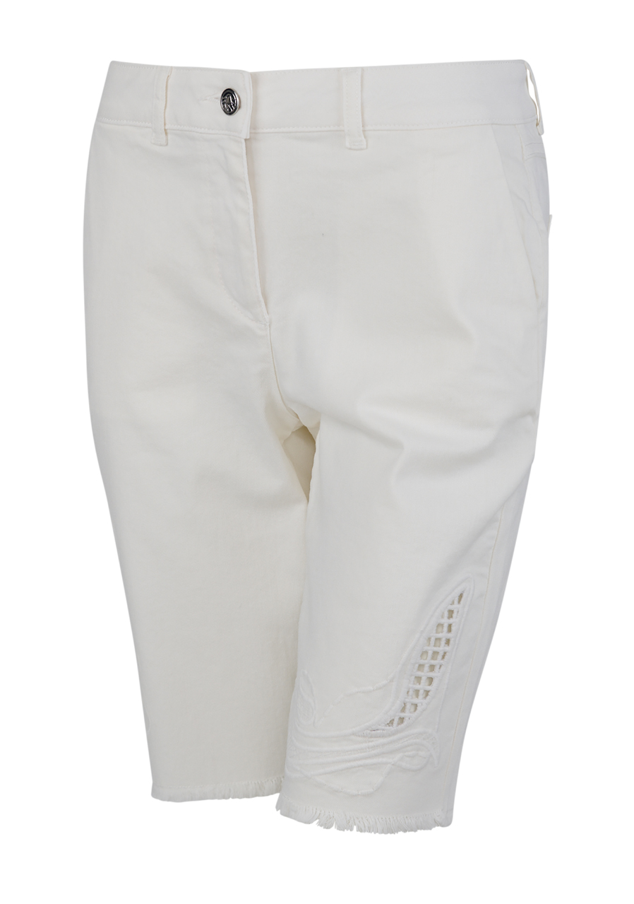 Parametry: Materiał: 98% bawełna, 2% elastan Długość wewnętrzna nogawki dla rozmiaru 36: 28,5 cm Dodatkowe informacje: Dopasowany krój, modny styl, miękki bawełniany denim, klasyczny pas ze szlufkami, guzik dżinsowy Sportalm i metka z tyłu, luźniejszy kształt nogawek, wąskie kieszenie z przodu, naszywane kieszenie z tyłu, asymetryczny haft na nogawkach, postrzępione wykończenie Lekkie i stylowe szorty, które łatwo zestawić i idealnie uzupełniają każdą letnią stylizację.