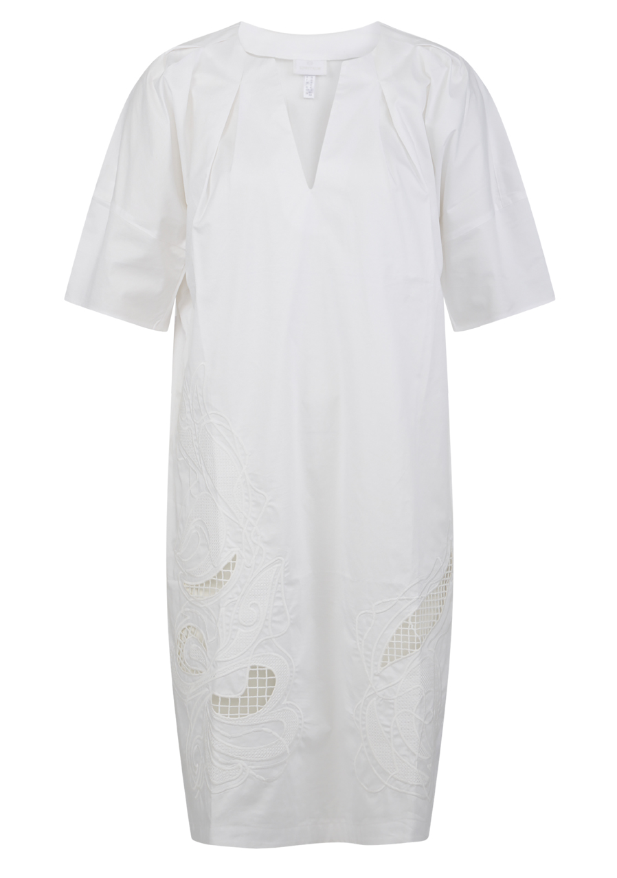 Šaty s výšivkou a plisováním z lehbé bavlny se vyznačují propracovanou výšivkou vpředu a sofistikovaným plisováním u výstřihu. Kombinují pohodlí se stylovými detaily a dodávají vašemu outfitu elegantní nádech.