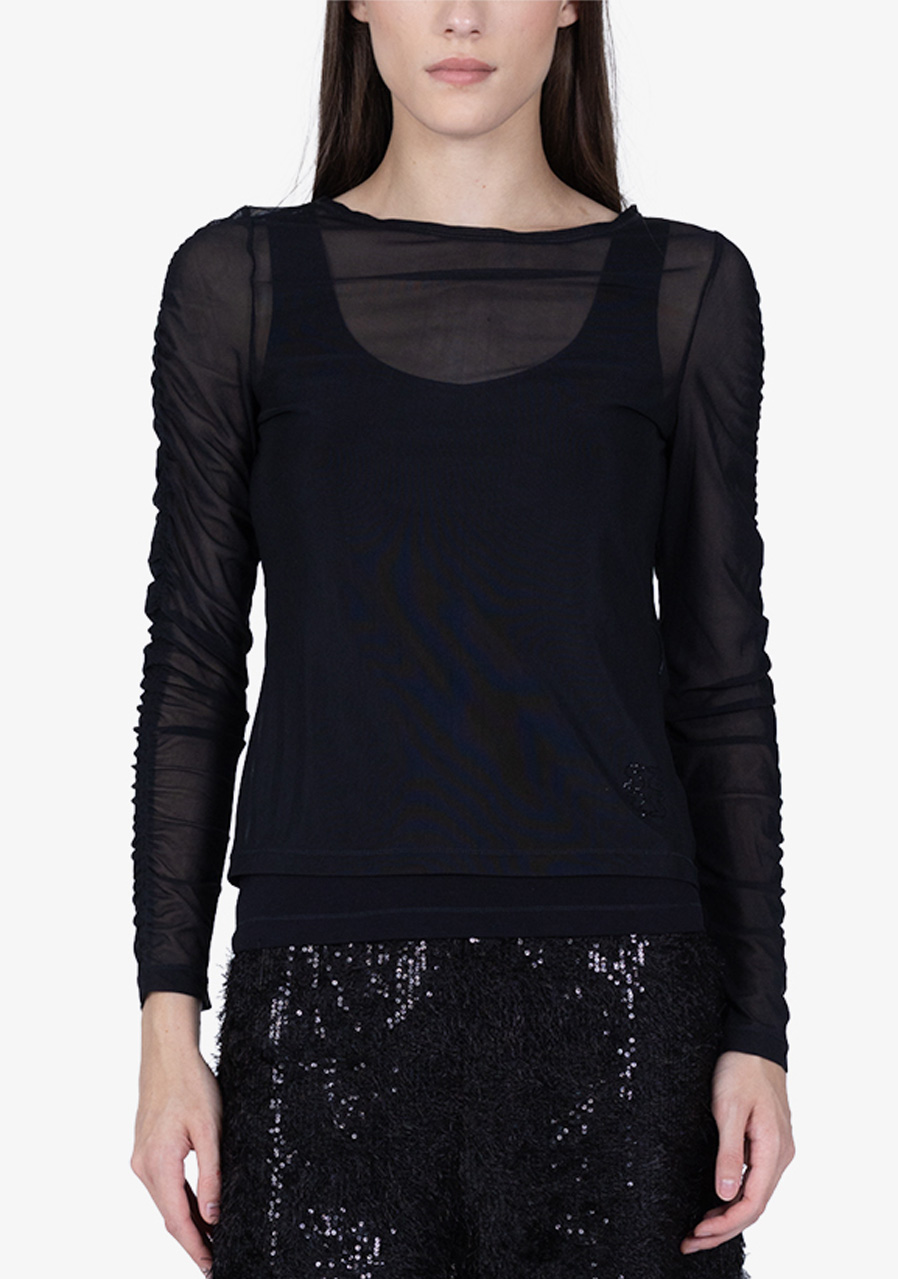 Dekolt : okrągły (warstwa zewnętrzna), dekolt w serek (zintegrowany top z przodu)