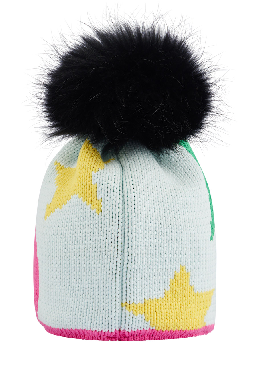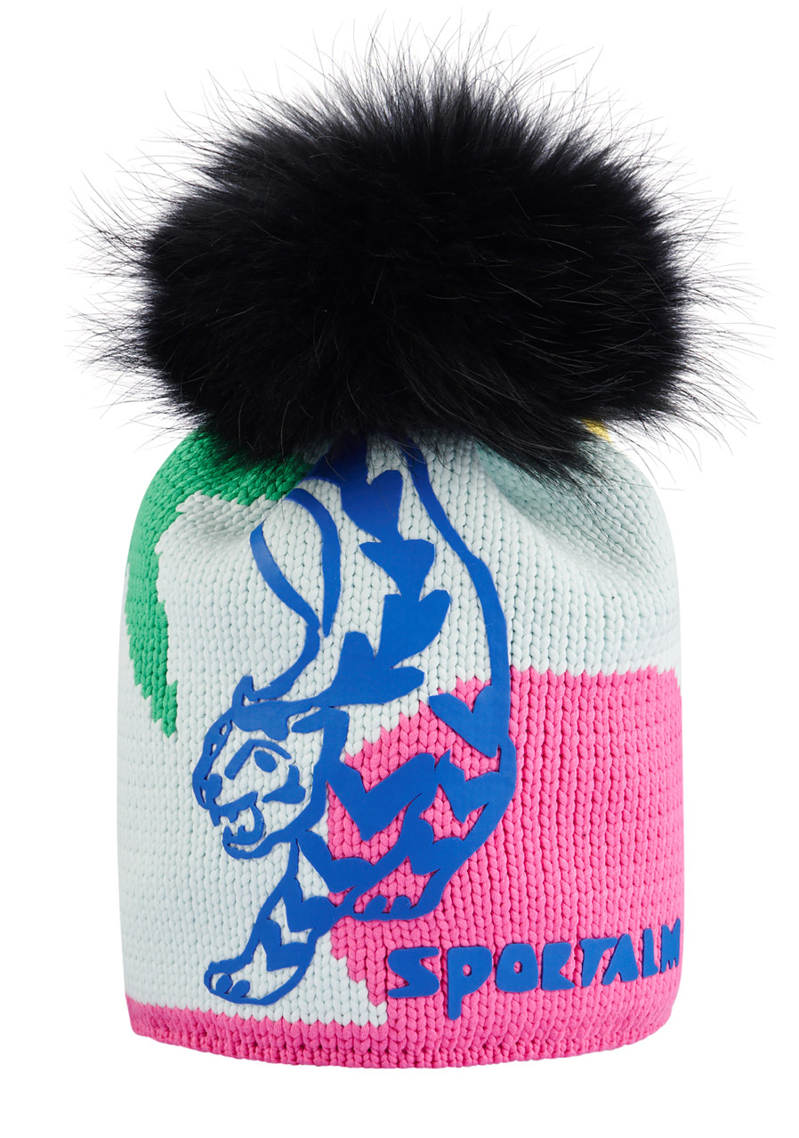 Tato mohutná pletená dámská čepice Sportalm, vytvořená v žakárové pletací technice, zaujme svým velkým celoplošným designem v tónových barvách, který dodává čepici moderní a elegantní vzhled. Stylově ji doplňuje odnímatelná bambule z pravé kožešiny. Hřejivá fleecová podšívka uvnitř zajišťuje maximální teplo a pohodlí během chladných zimních dnů. Tento módní a funkční doplněk je ideální volbou pro ty, kdo chtějí být v teple a zároveň vypadat stylově.