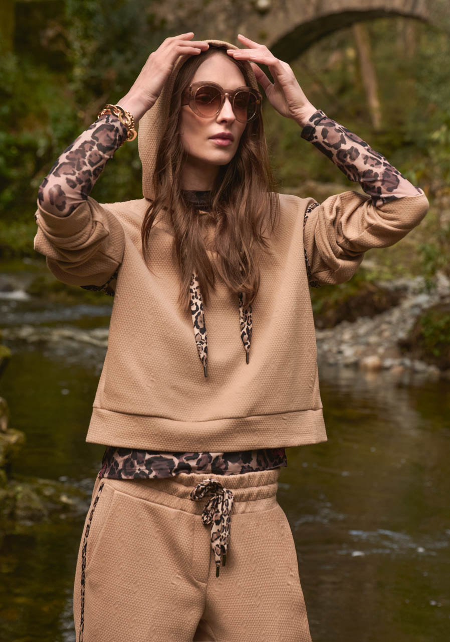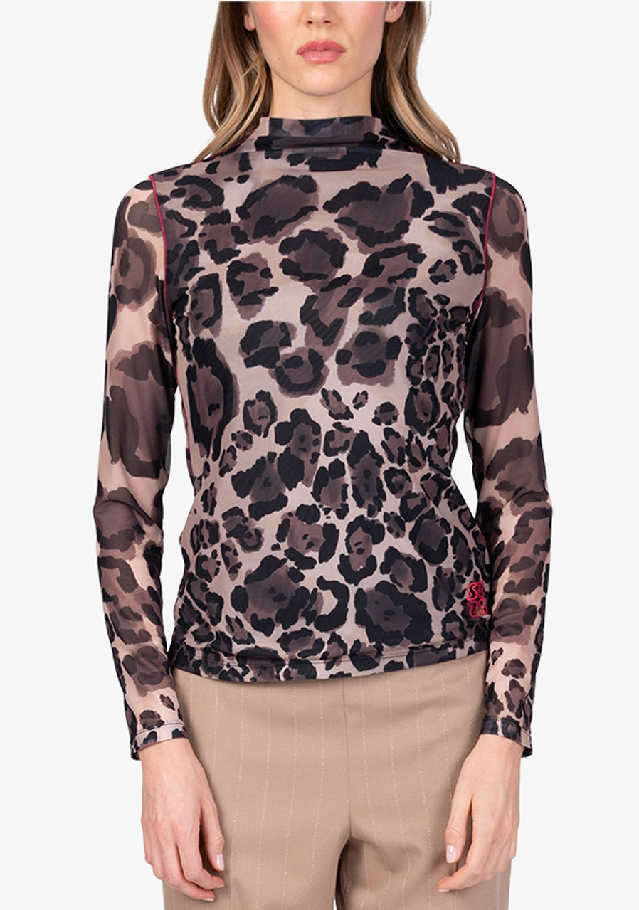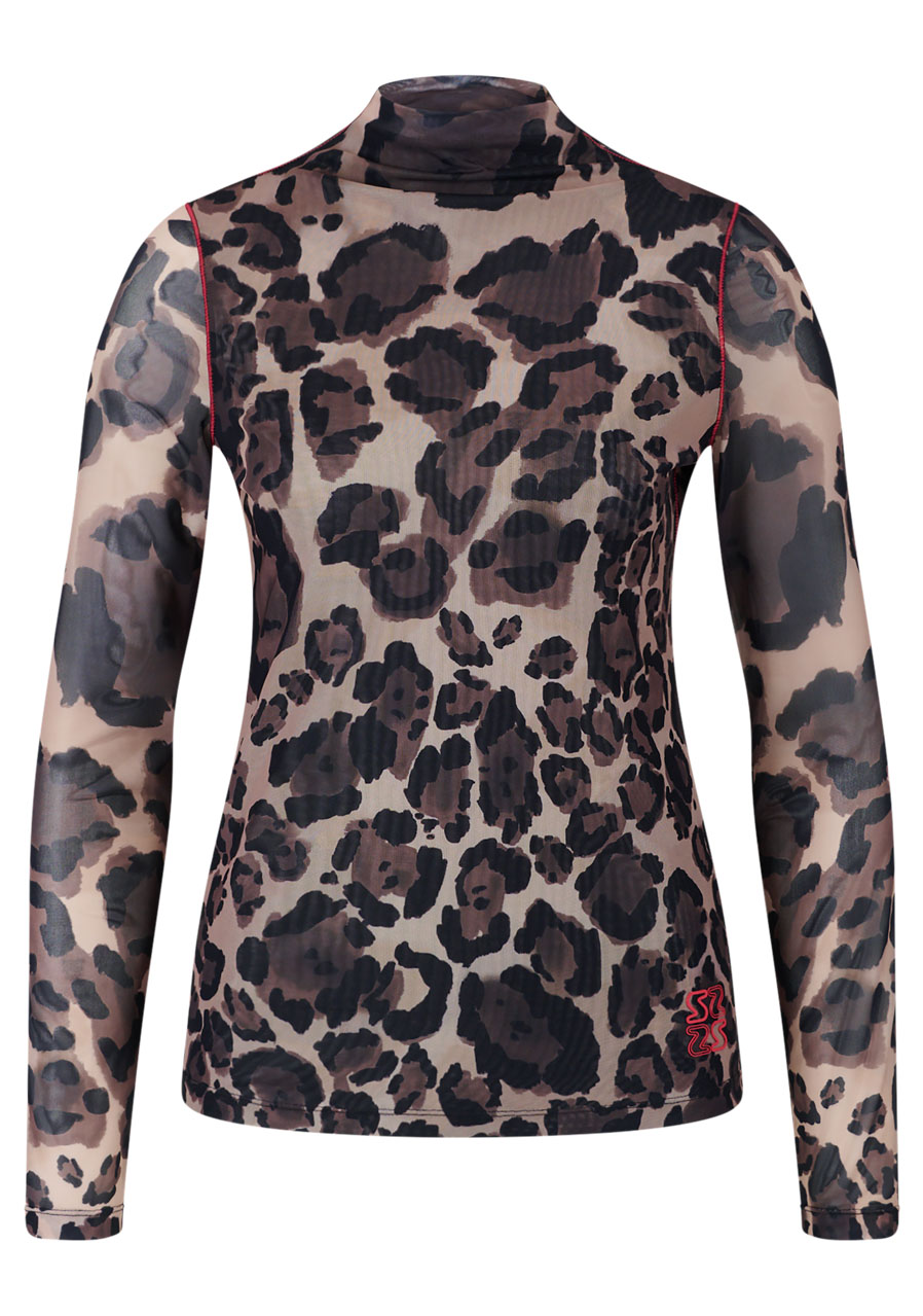 Parametry: Materiał : miękka siateczka Skład : 94% poliester, 6% elastan (typowy dla tego typu modelu) Krój : dopasowany, dwuwarstwowy Wzór : charakterystyczny nadruk na całej powierzchni Dekolt : dopasowany kołnierz stójka Rękawy : długie, wąskie Długość tyłu (rozmiar 36) : 61 cm Styl : modny, kobiecy Sezon : Jesień/Zima 2025