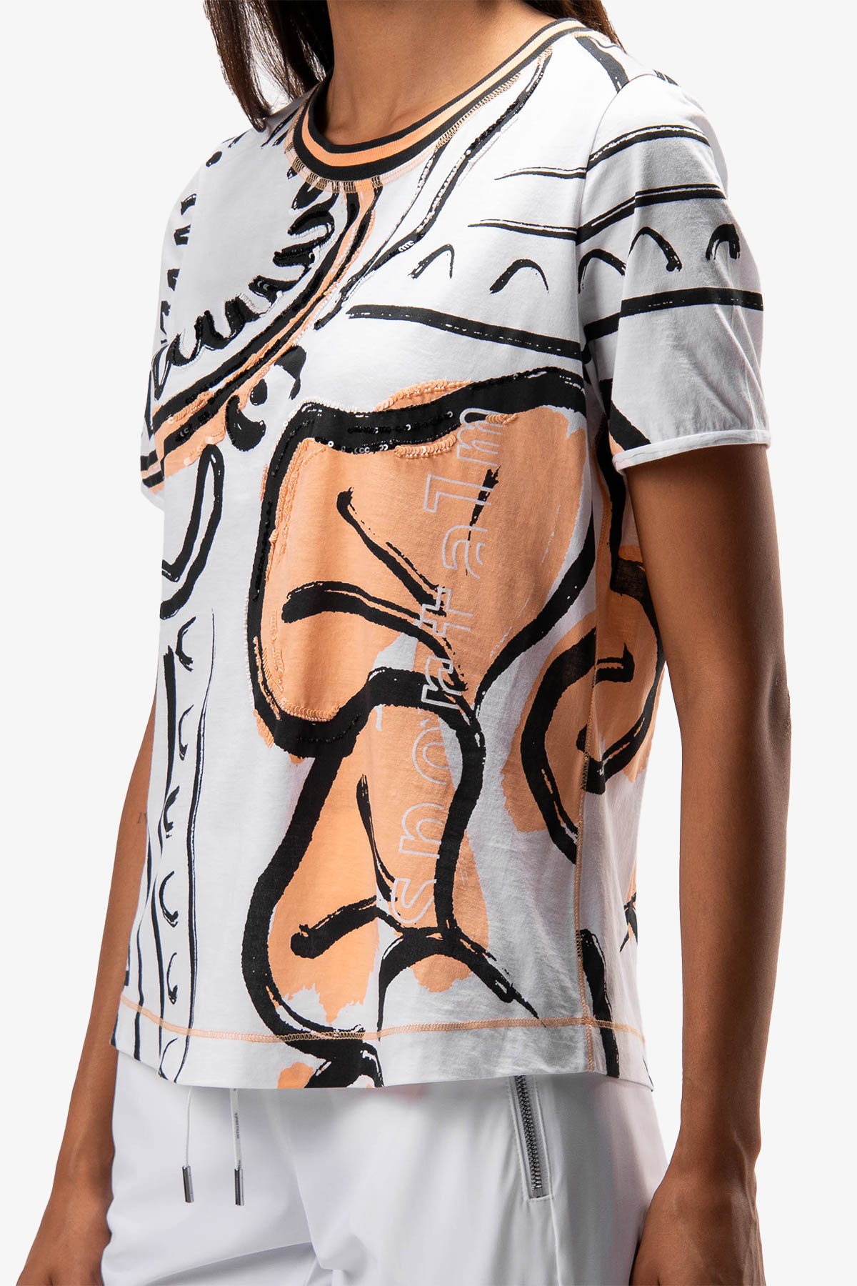 - v přední části potisk zdobený ozdobnými korálky a flitry
