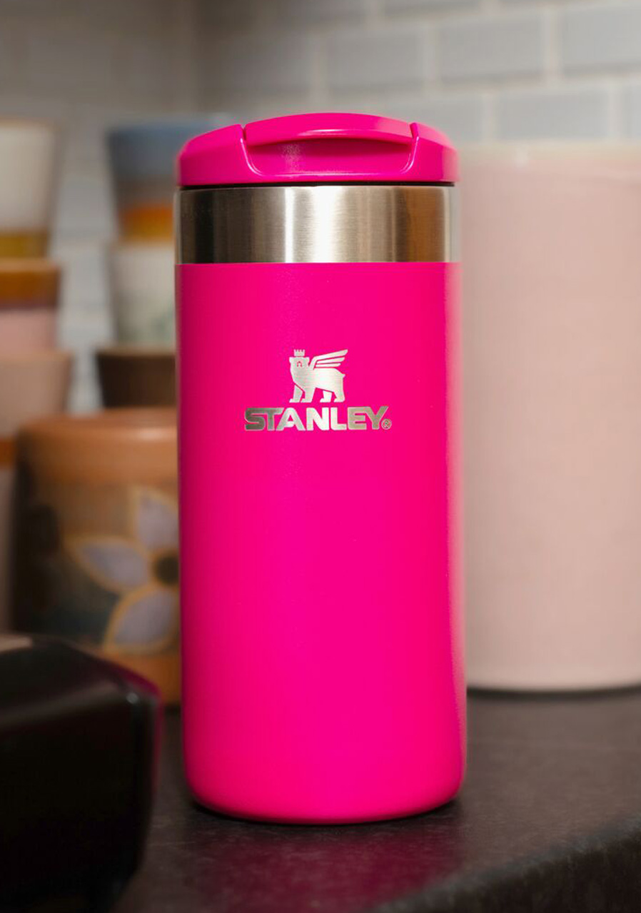 Kubek STANLEY AeroLight™ Transit Mug w kolorze Pink Vibes to idealny towarzysz codziennych podróży, pracy czy wycieczek. Dzięki kompaktowej pojemności 350 ml jest łatwy w przenoszeniu i wygodnie mieści się w uchwytach na kubki. Dwuścienna izolacja próżniowa utrzymuje ciepło gorących napojów do 4 godzin, a zimne napoje orzeźwiają do 8 godzin. Innowacyjna nakrętka obsługiwana jedną ręką umożliwia szybkie i bezpieczne picie, a trwała konstrukcja ze stali nierdzewnej gwarantuje długą żywotność i bezpieczeństwo użytkowania. Stylowy design Pink Vibes nadaje nowoczesny wygląd.