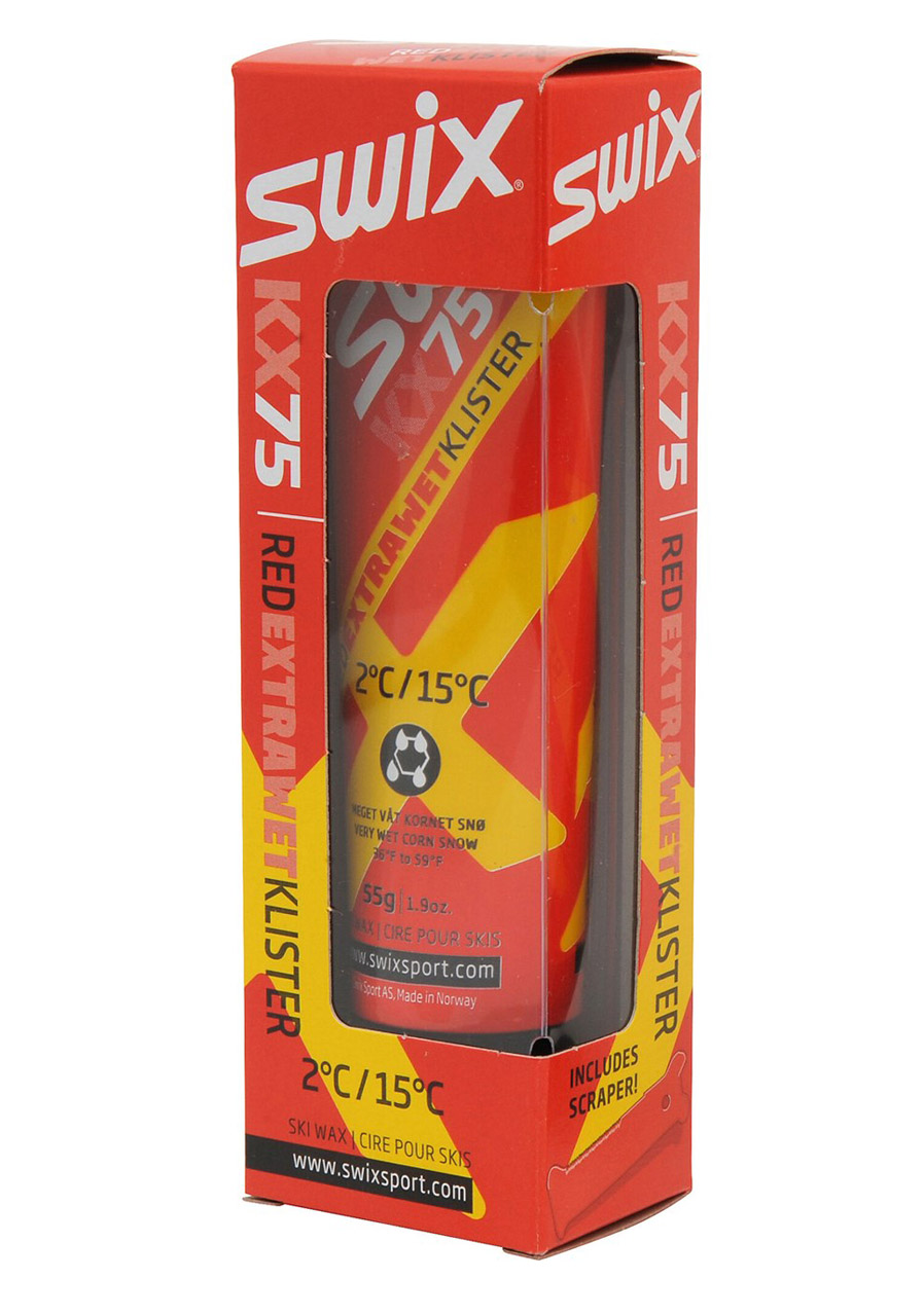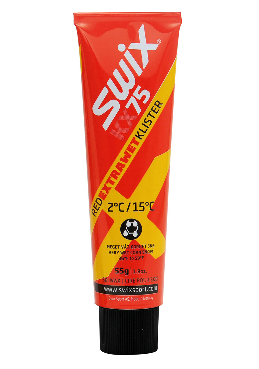 ČERVENÝ EXTRA WET. +2°C až +15°C. Klistr na mokrý sníh. Používá se, když sníh obsahuje vysoké množství vody a teplota vzduchu je vysoko nad bodem mrazu. Klistr na pozdní jaro.