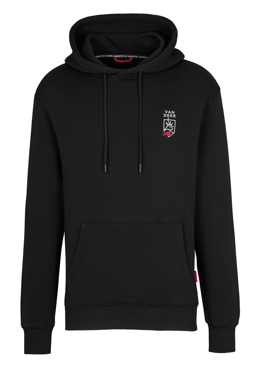 Bluza z kapturem Van Deer Essential w kolorze czarnym to idealny model na co dzień i do noszenia w czasie wolnym. Klasyczny krój z kapturem i kieszenią kangurką nadaje jej swobodny, a zarazem elegancki wygląd. Miękki materiał zapewnia wygodę przez cały dzień, a subtelne logo Van Deer na piersi nadaje bluzie sportowo-elegancki charakter.