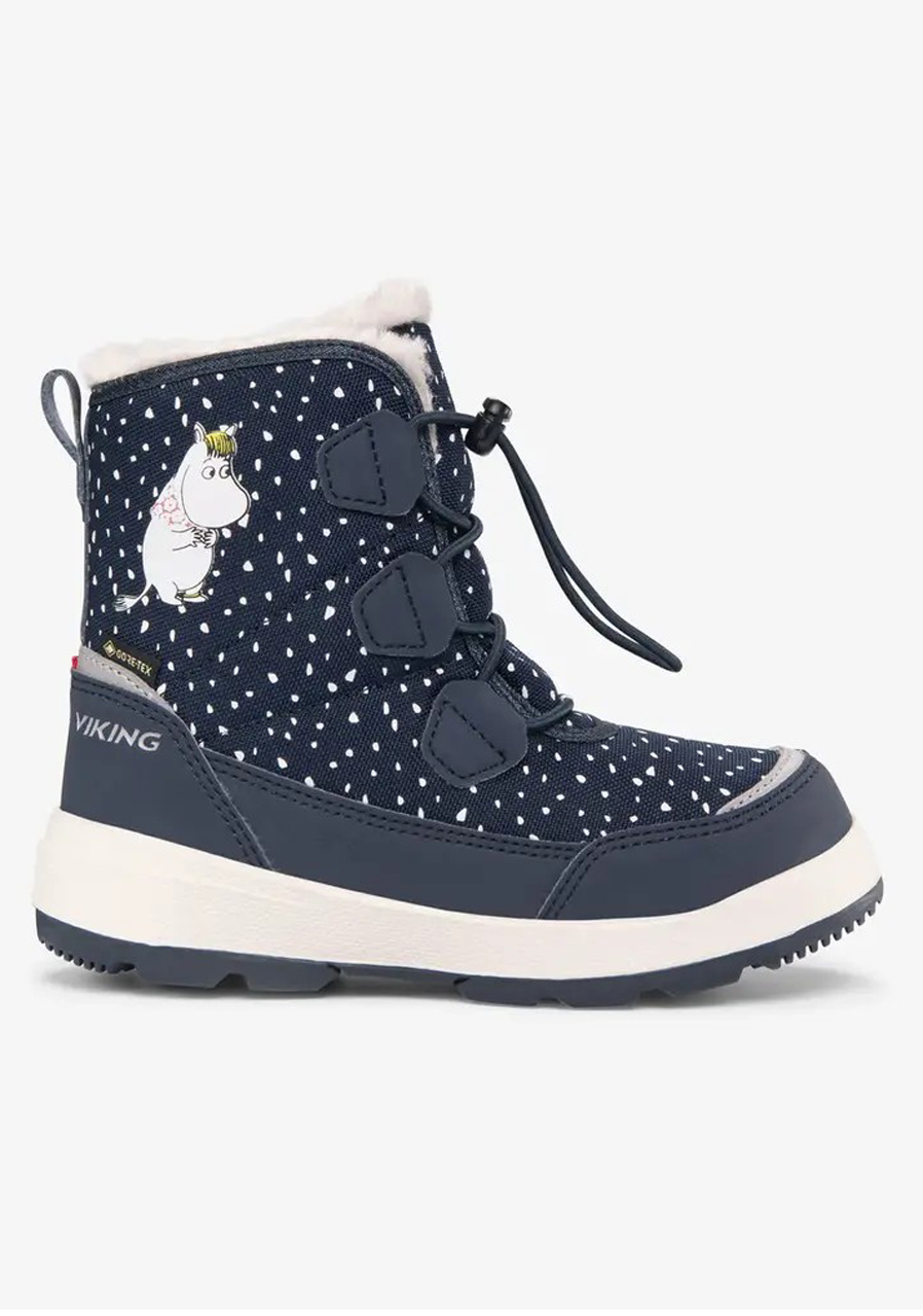 Opis:Dziecięce buty Viking 3-93000-5 Toasty Warm GTX Zip Moomin Navy – Ciepłe i wodoodporne zimowe buty z motywem Muminków