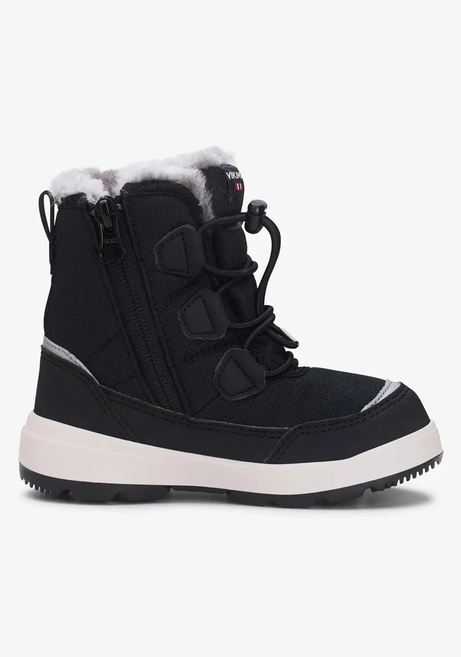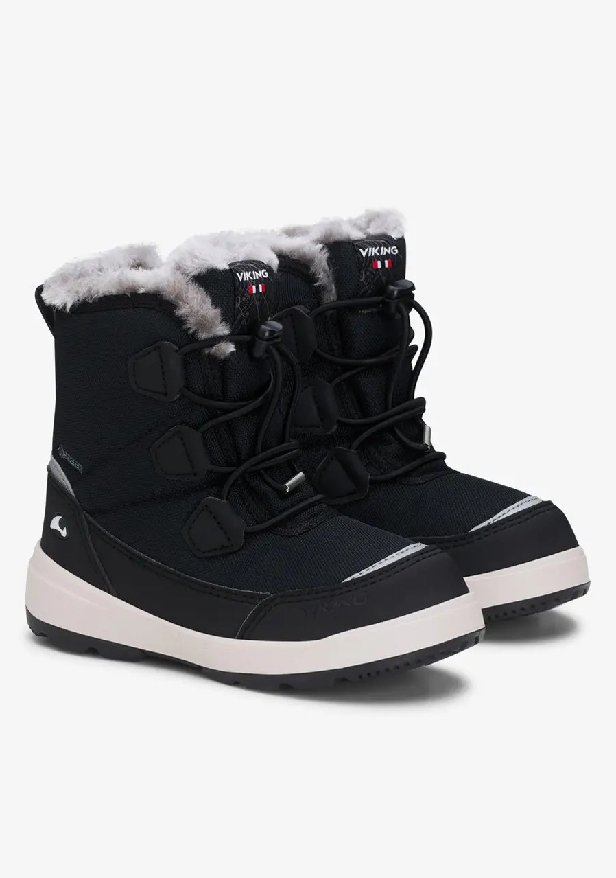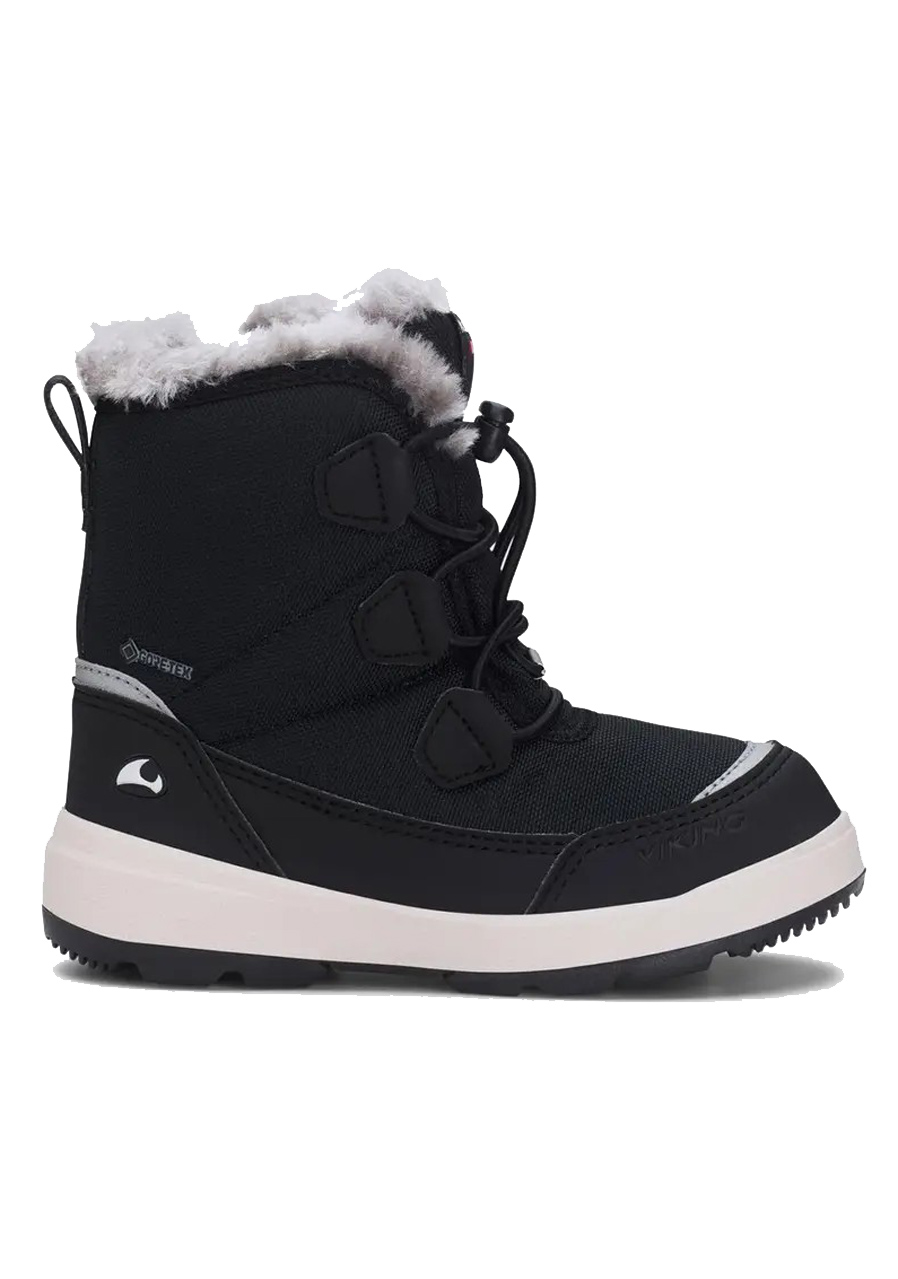 Zimowe buty dziecięce Viking Montebello High GTX Warm w klasycznym czarnym kolorze Black to doskonały wybór na chłodne i śnieżne dni. Dzięki wysokiej cholewce, ocieplanej konstrukcji oraz wodoodpornej membranie GORE-TEX® zapewniają wyjątkową ochronę przed mrozem, śniegiem i wilgocią – idealne do codziennego noszenia i dłuższych zabaw na świeżym powietrzu.