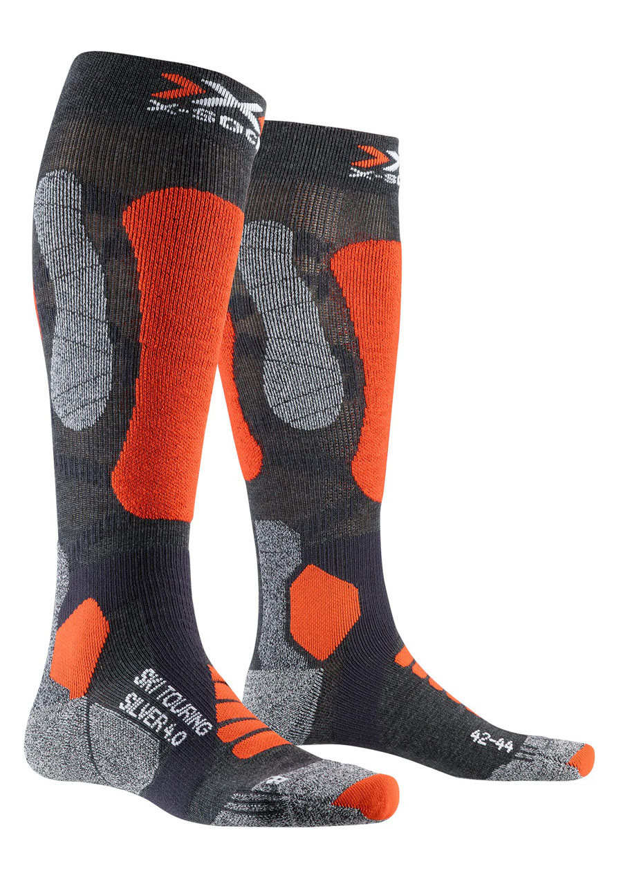 Męskie podkolanówki X-SOCKS® Ski Touring Silver 4.0 w kolorystyce Anthracite Melange/Orange Fluo zostały zaprojektowane specjalnie z myślą o wymagających podejściach skiturowych i długich wędrówkach w górskim terenie. Dzięki najwyższej jakości materiałom i nowoczesnym technologiom zapewniają doskonały komfort, ochronę i wsparcie na każdym etapie – od doliny aż po szczyt.
